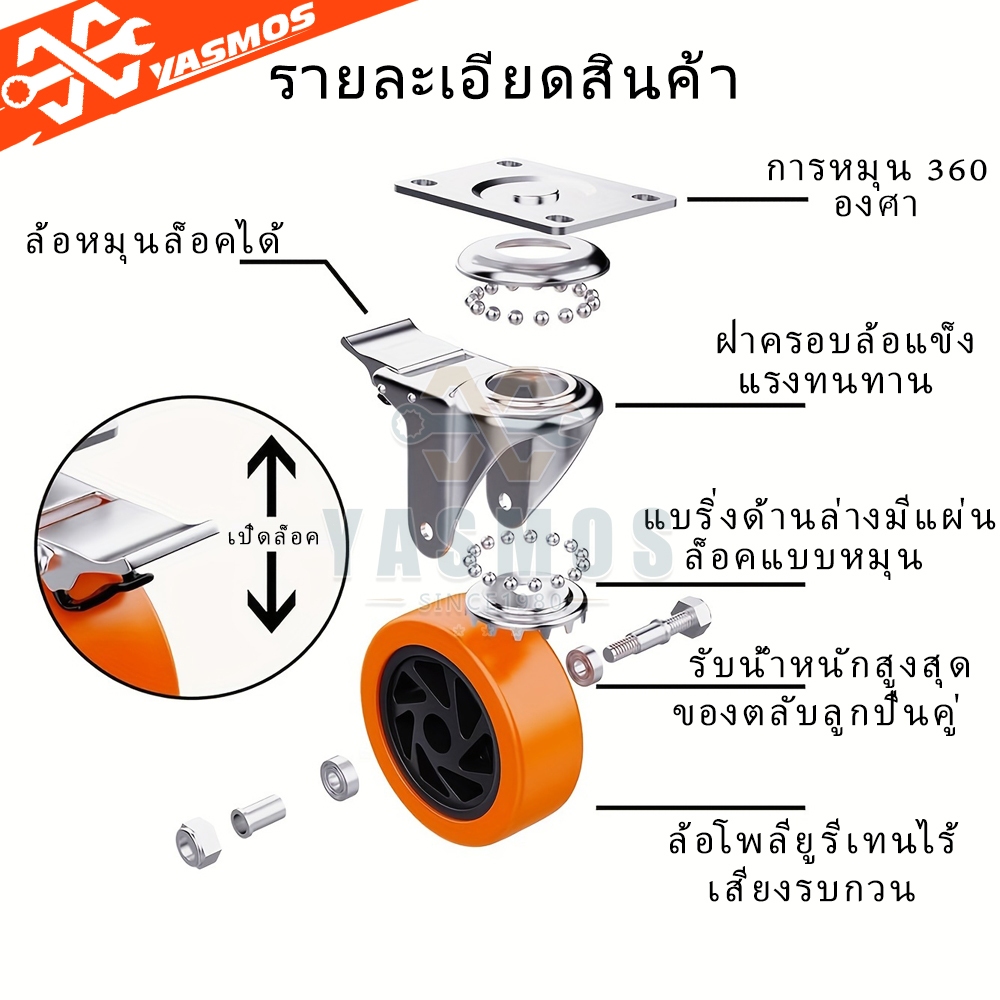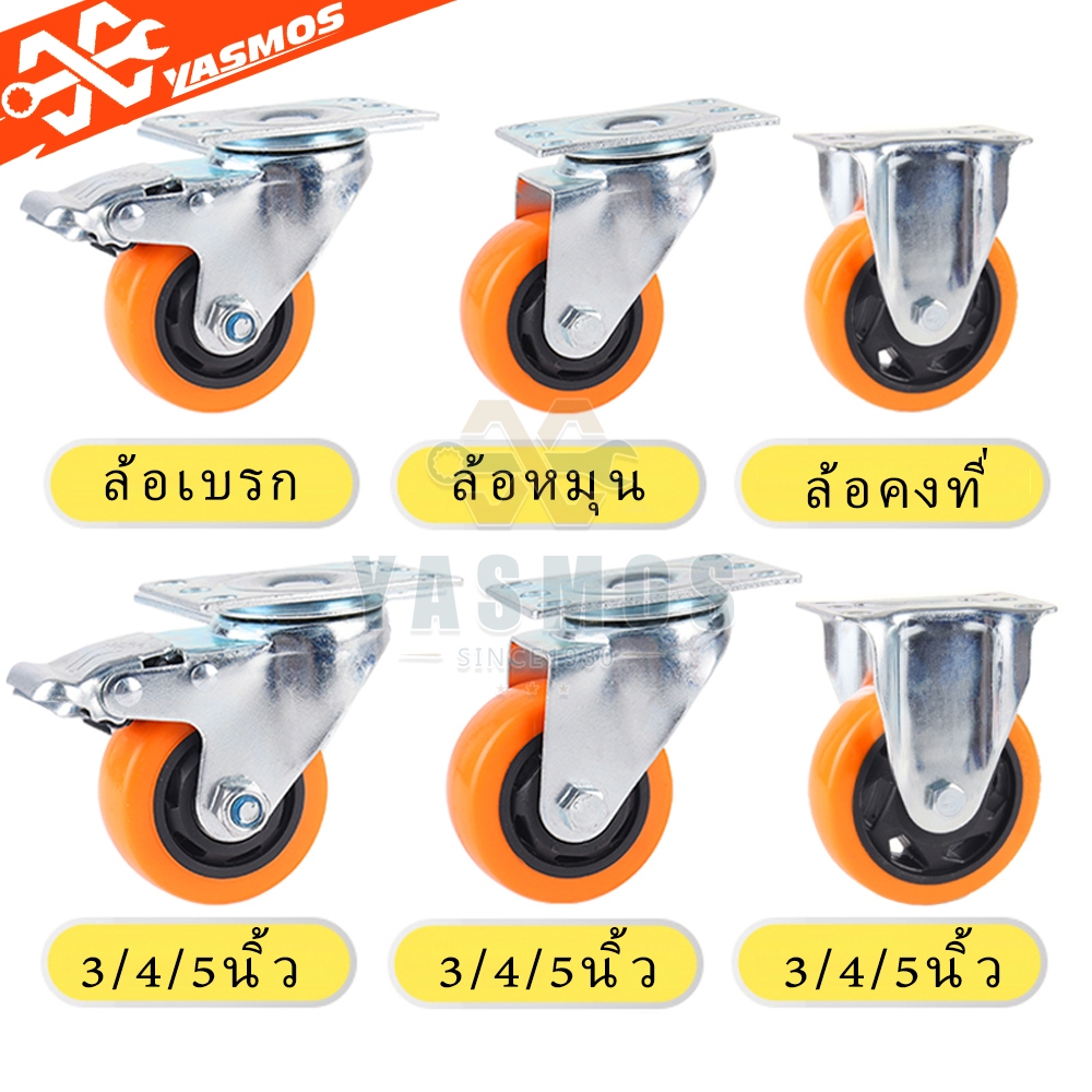 (4 ชิ้น) ล้อรถเข็น Caster wheel ล้อPU/ยูริเทน ขนาด1.5/2/3/4/5นิ้ว แป้นหมุน360° มี/ไม่มีเบรก สำหรับรถเข็น/เก้าอี้สำนักงาน