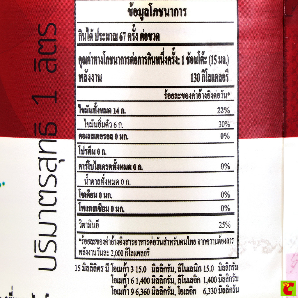 ทับทิม น้ำมันพืชแบบขวด (น้ำมันปาล์ม) ขนาด 1 ลิตร