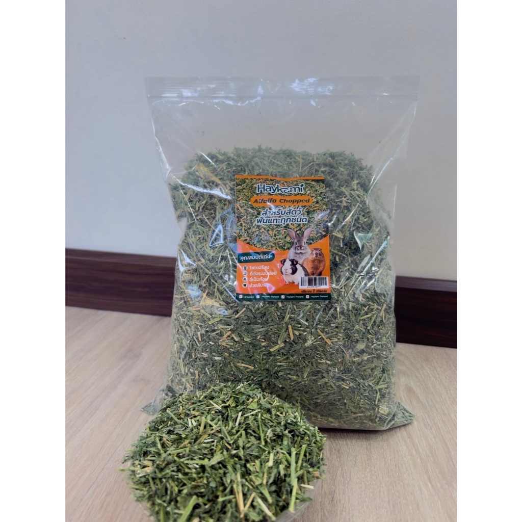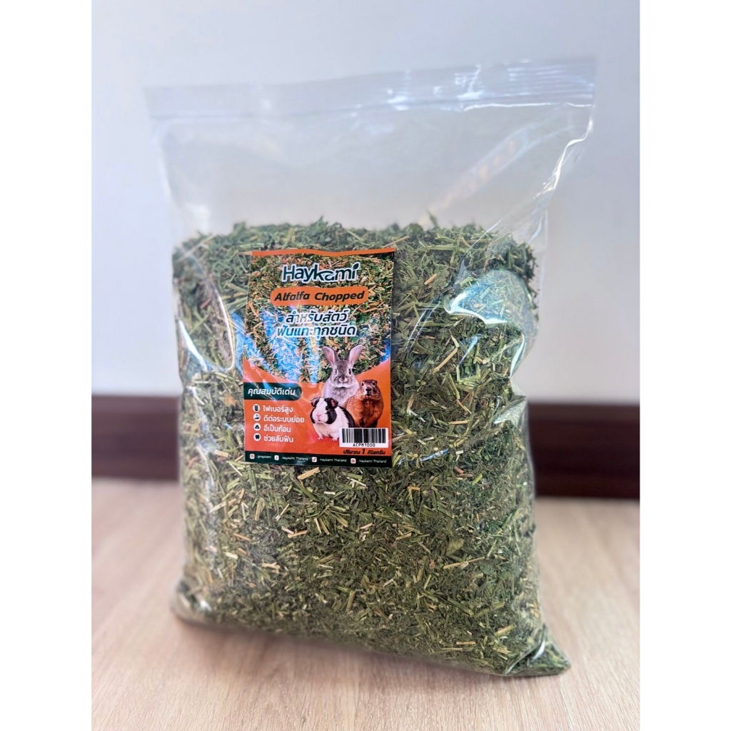 Haykami หญ้าอัลฟาฟ่าสับ Alfalfa เกรดพรีเมียม ร่อนฝุ่น 1 กิโลกรัม หญ้าใหม่ เขียว หอม