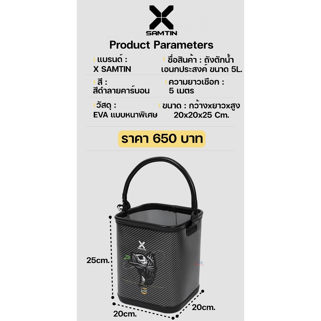 ถังใส่น้ำอเนกประสงค์ X SAMTIN ขนาด 5L สีดำลายคาร์บอน วัสดุคอมโพสิตหนาพิเศษ กันน้ำรั่วซึม 100%