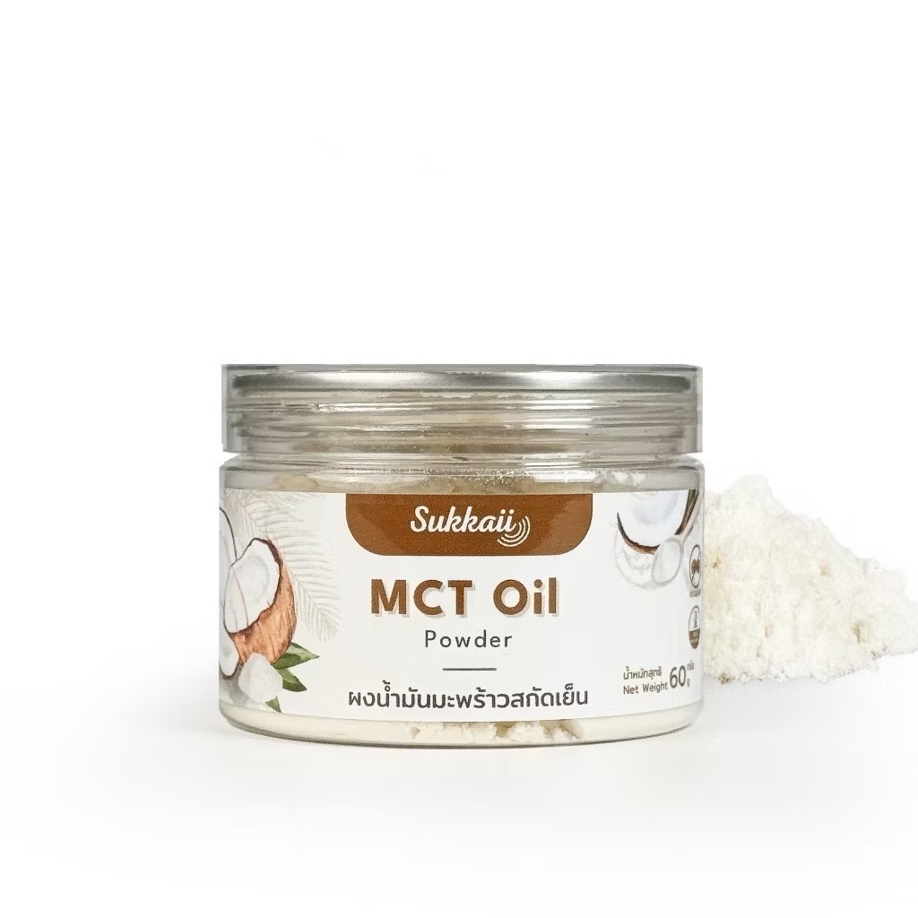 ผงน้ำมันมะพร้าว สกัดเย็น Sukkaii ผงเอ็มซีที ออยล์ MCT Oil powder 60g KO