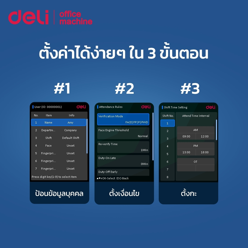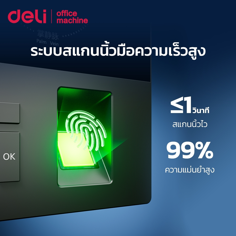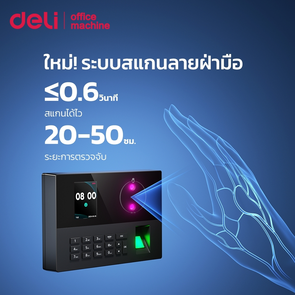 Deli เครื่องลงเวลางาน สแกนใบหน้า/นิ้วมือ/ฝ่ามือ รองรับ 4 ภาษา กล้องอินฟราเรดคู่ Attendance Machine
