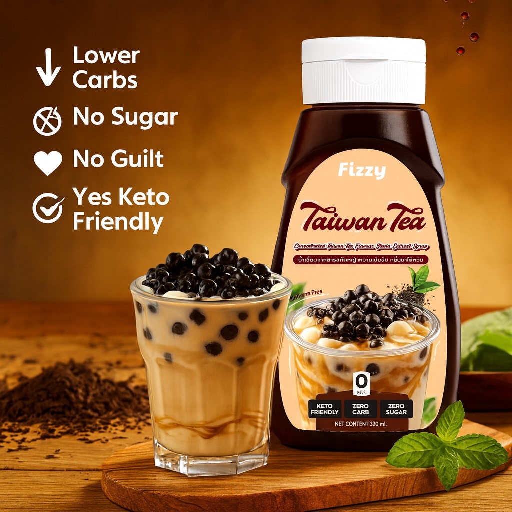 ฟรีซซี่ ไซรัปคีโต ชาไต้หวัน(ไม่มีกาเฟอีน) หอมหวานอร่อยไม่มีน้ำตาล 320ml