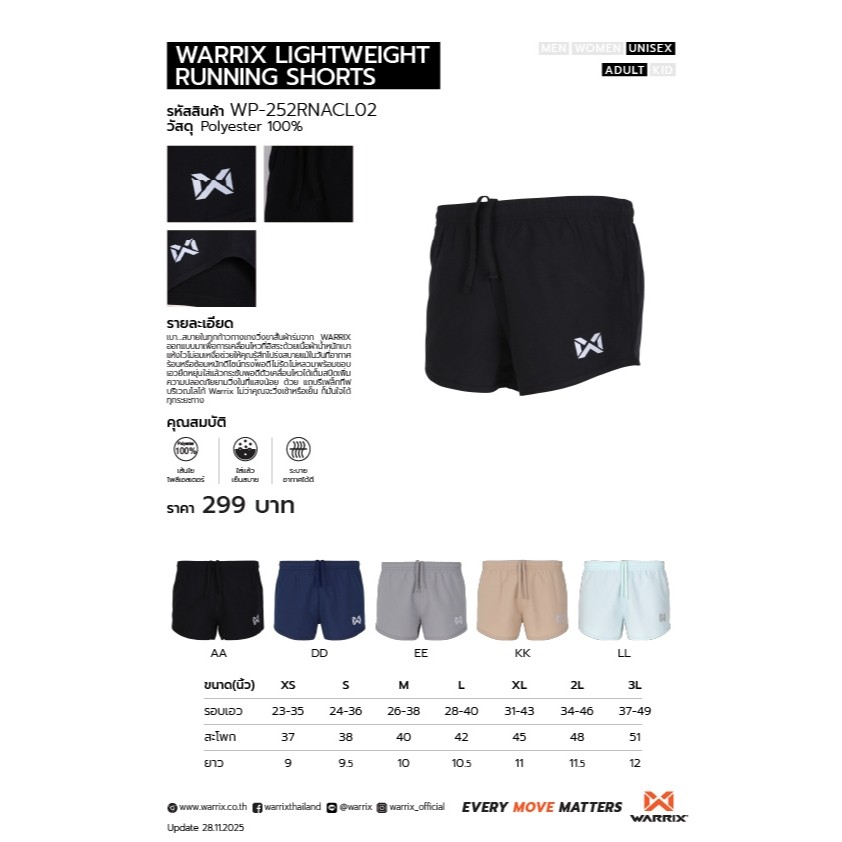 WARRIX กางเกงวิ่ง รหัส WP-252RNACL02 เนื้อผ้า โพลีเอสเตอร์