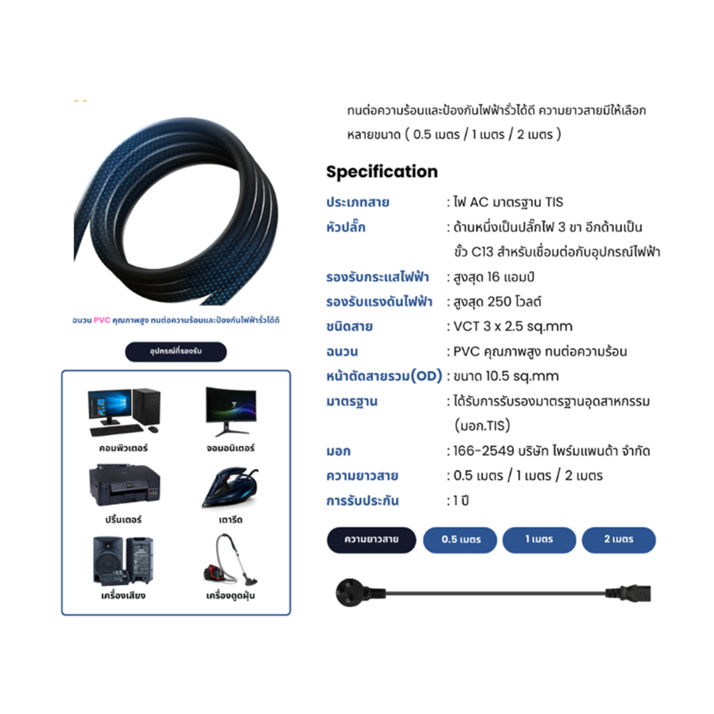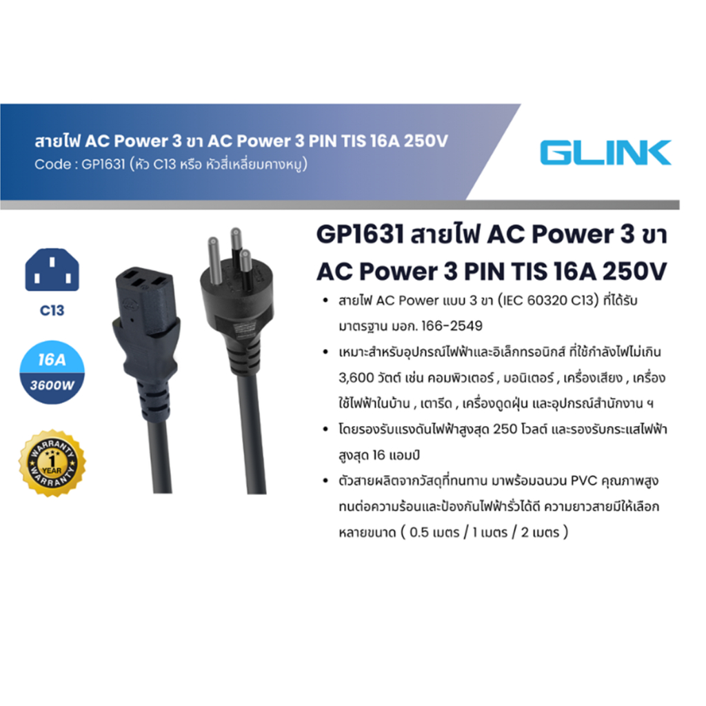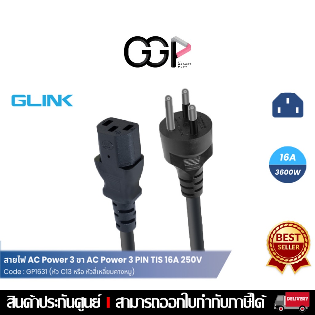 GLINK GP1631 Cable AC Power สายไฟ แบบ 3 ขา ความยาว 1m/2m สายไฟคอมพิวเตอร์ สายAC สายคุณภาพดี ของแท้[กรุงเทพฯเลือกส่งด่วน]