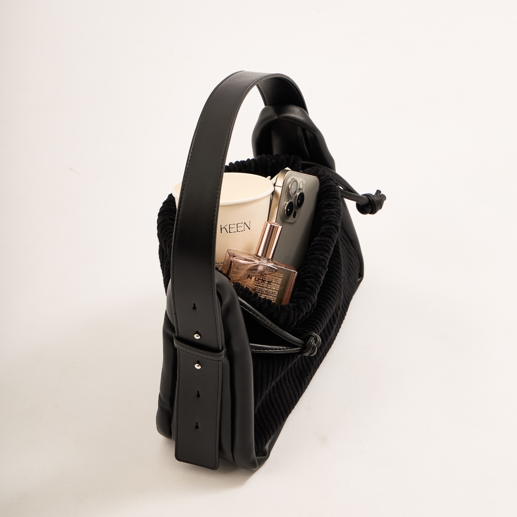 HERMILE รุ่น DUME กระเป๋าสะพายไหล่ ขนาด 10 นิ้ว วัสดุหนัง PU คุณภาพสูง และผ้า Corduroy ดีไซน์ Everyday Compact
