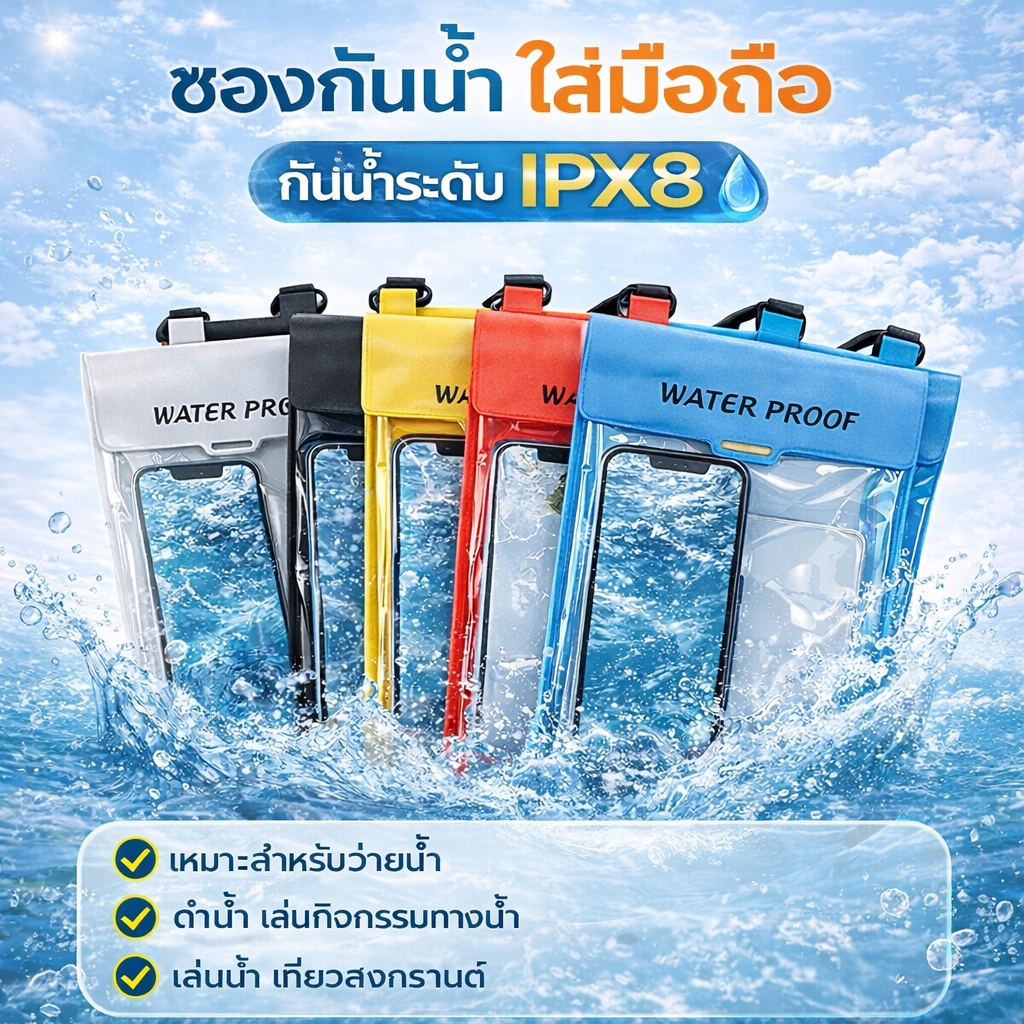 กระเป๋าคาดเอวกันน้ํา รุ่นใหม่2026 ซองกันน้ำ สำหรับโทรศัพท์ ขนาดใหญ่ กันน้ำได้ดี ความจุสูง มีหลายสีให้เลือก เล่นสงกรานต์