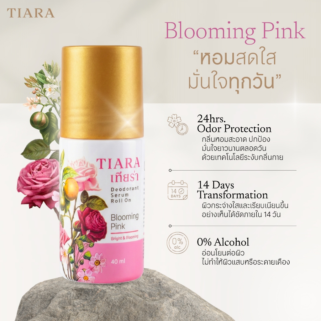 Tiara เซรั่มโรลออน บลูมมิ่ง พิงค์ 40มล.