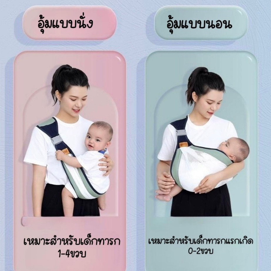 เป้อุ้มเด็กแรกเกิด ให้นมสะพายสะพายได้ 2 ท่า สายปรับสะพาย นั่งได้ สะพายหน้า-หลัง มีให้บริการตั้งแต่ 1 ถึง 4 ปี