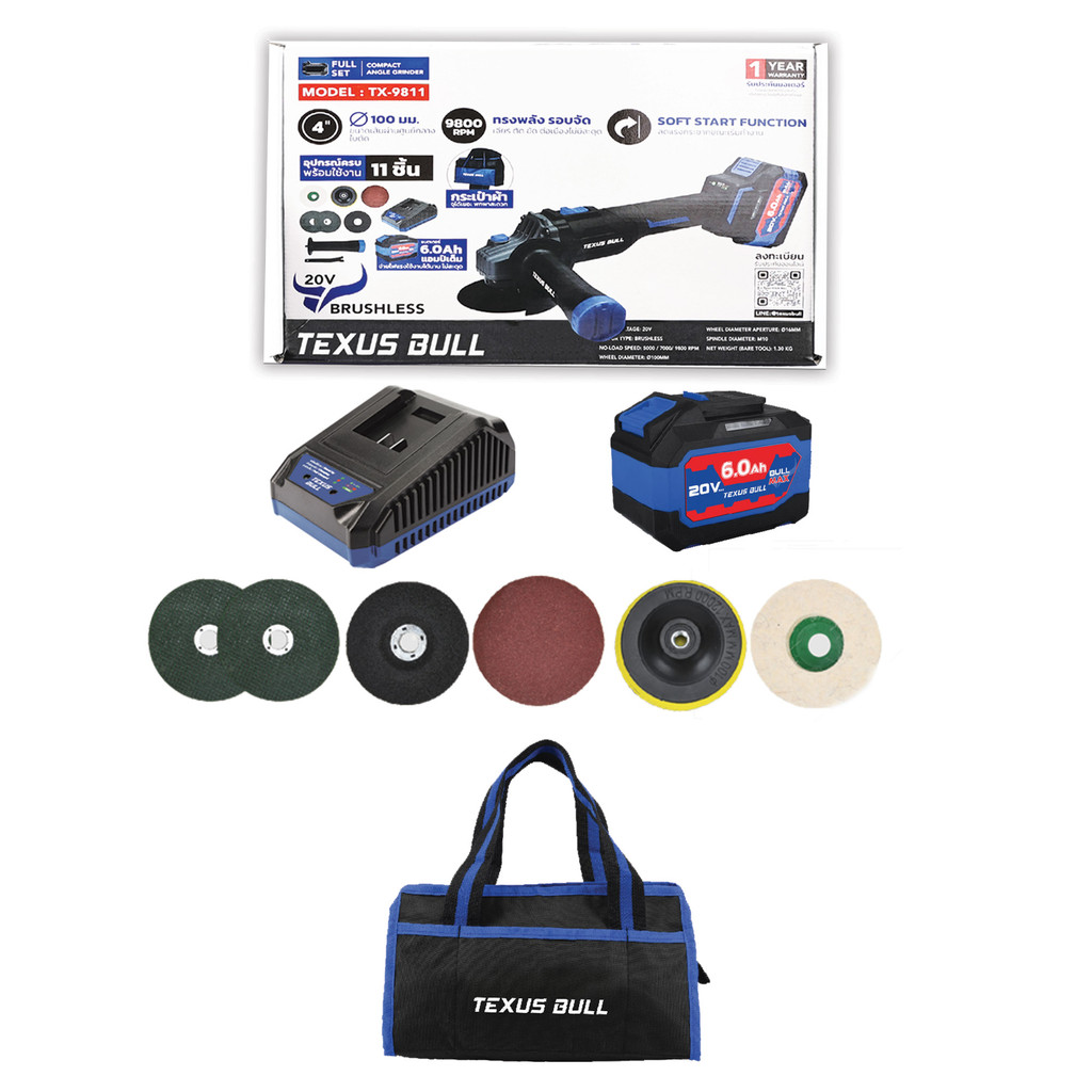 ðTEXUS BULLðĪāđāļāļĢāļ·āđāļāļāđāļāļĩāļĒāļĢāđāđāļĢāđāļŠāļēāļĒ 4" 20V TEXUS BULL āļĢāļļāđāļ TX-9811 (āđāļāļ 6.0Ah x 1) , āļāļąāļ§āđāļāļĨāđāļē āļĢāļļāđāļ TX-9808