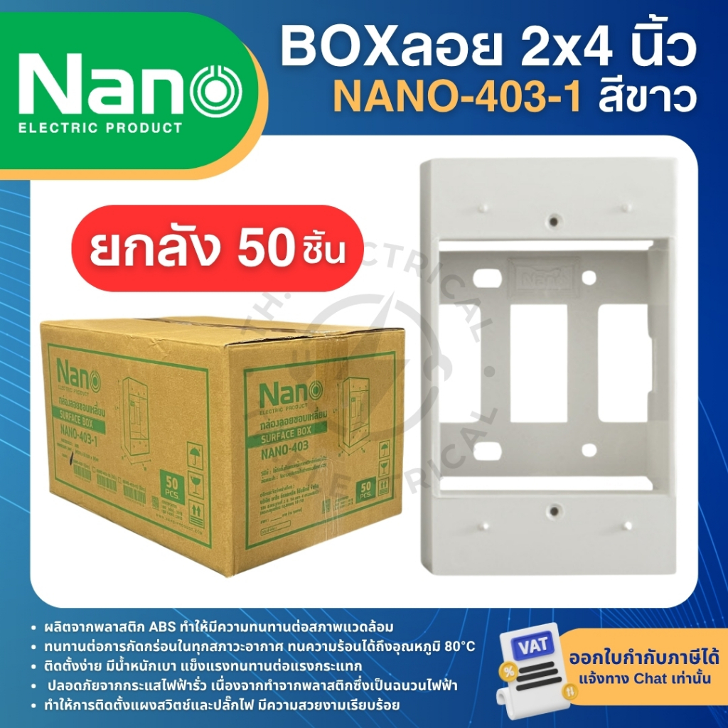 (ยกลัง50ชิ้น) NANO กล่องลอยขอบเหลี่ยม บล็อกลอย 2x4 นิ้ว สีขาว สีดำ NANO-403-1 SURFACE BOX