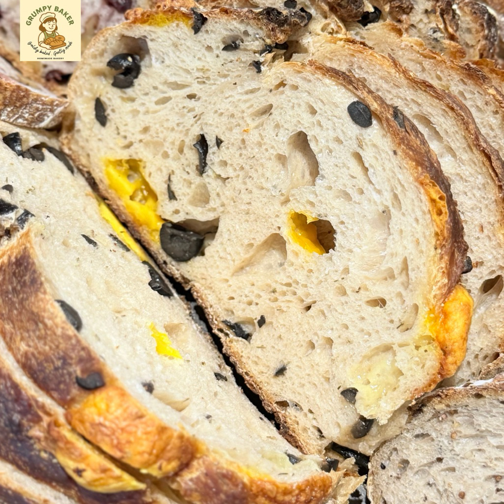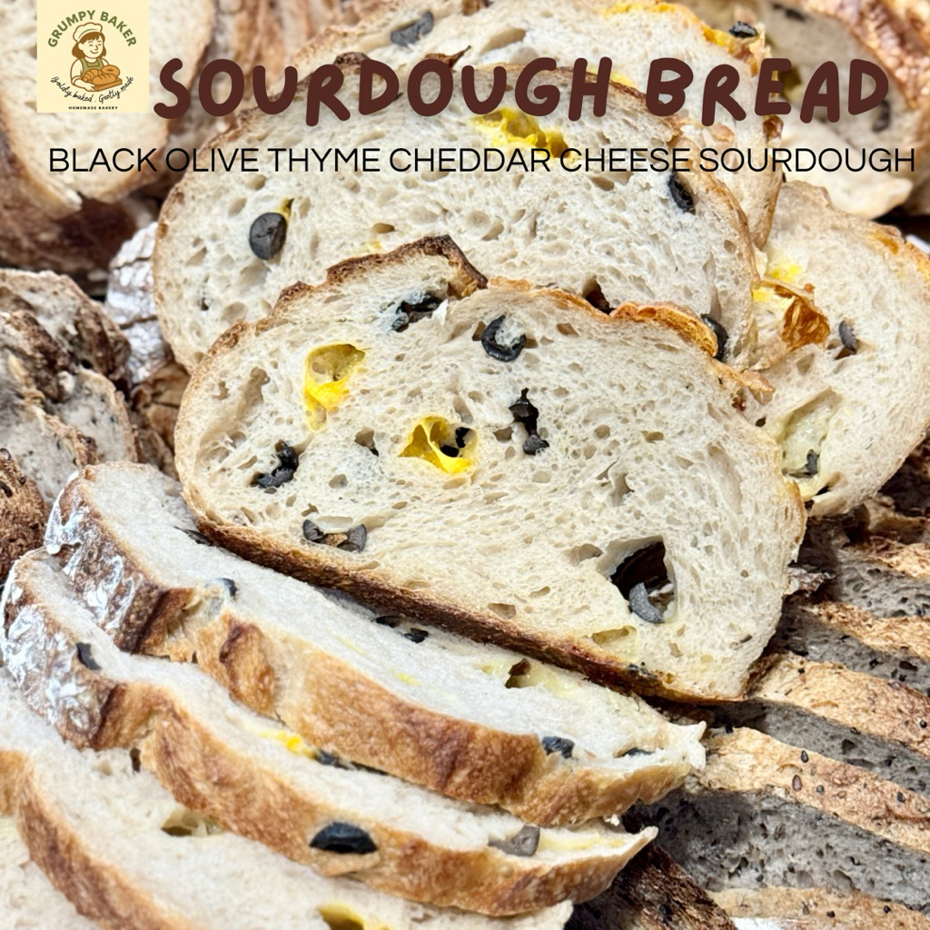 Black olive thyme cheddar sourdough - มะกอกดำไทม์เชดด้าชีสซาวโดว์ แท้ 100%