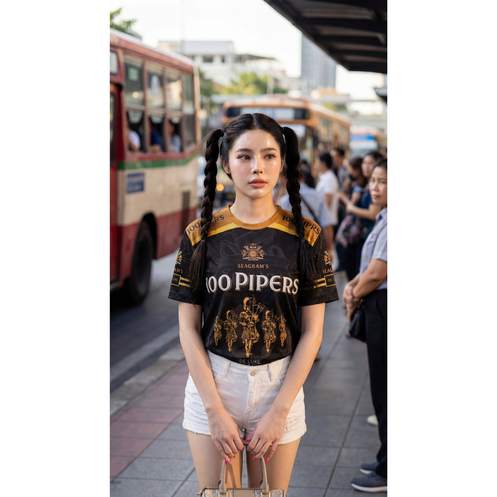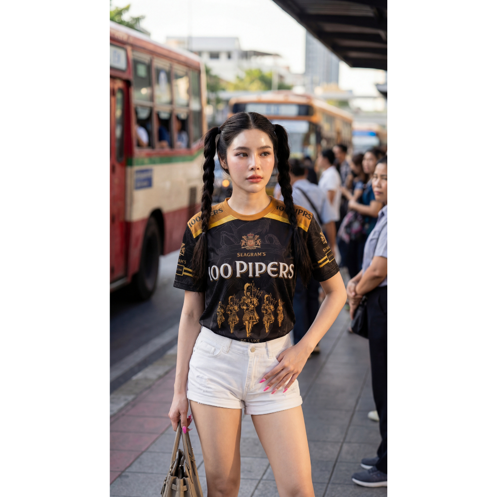 เสื้อกีฬาลายคอกลมแขนสั้นลายร้อย ใส่สบาย
