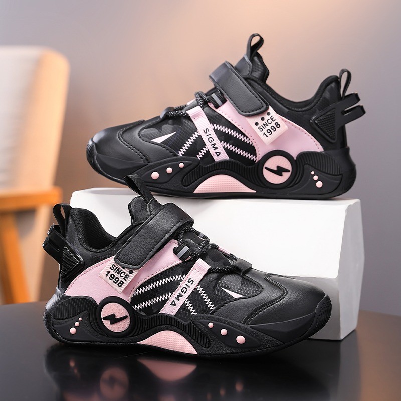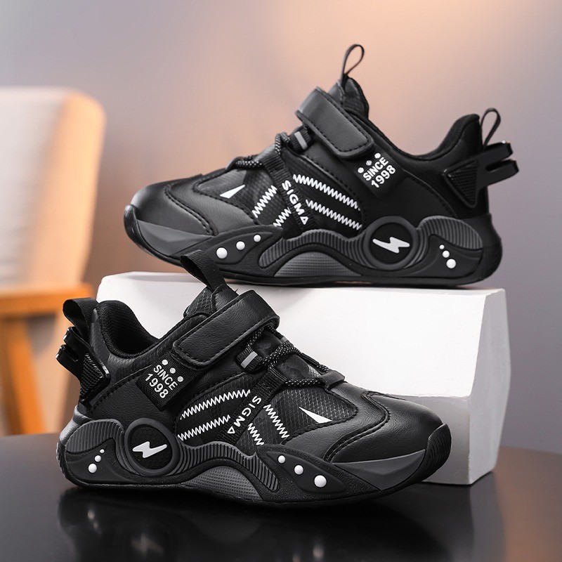 [สะดวกสบายระบายอากาศ, กันลื่นทนทาน] เด็กหนังแฟชั่นรองเท้ากีฬาชายหญิงรองเท้าลําลองรองเท้าวิ่ง