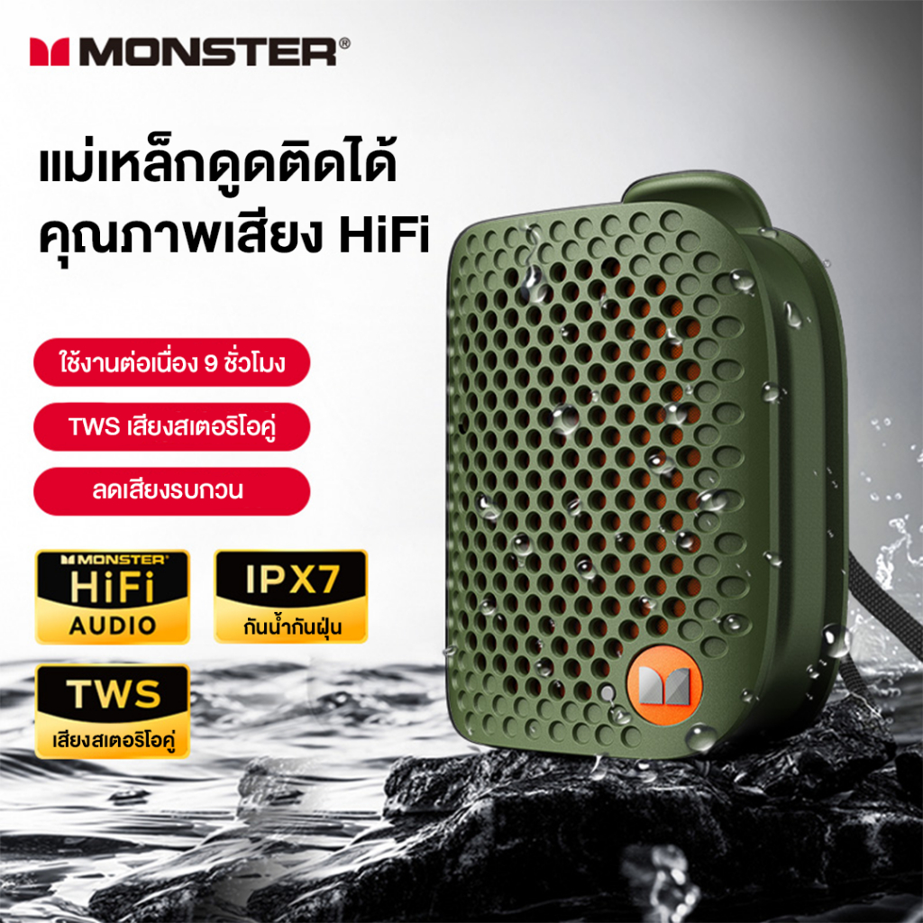Monster M3 ลําโพงบลูทูธแบบพกพาซับวูฟเฟอร์ High Fidelity IPX5 กันน้ําเหมาะสําหรับ กีฬา กีฬากลางแจ้ง