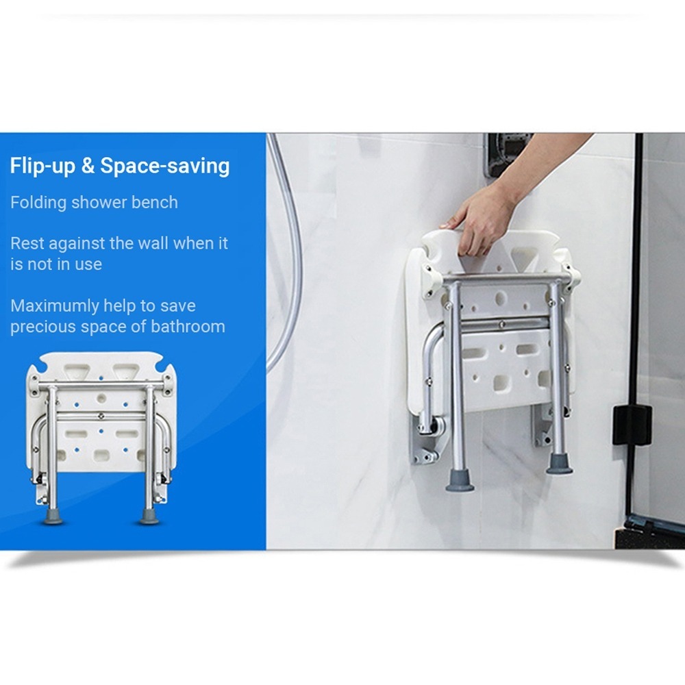 เก้าอี้อาบน้ำแบบพับได้ ติดผนัง /เก้าอี้อาบน้ำที่นั่งอาบน้ำ/ที่พักเท้ากันลื่น/รับน้ำหนัก 180kg
