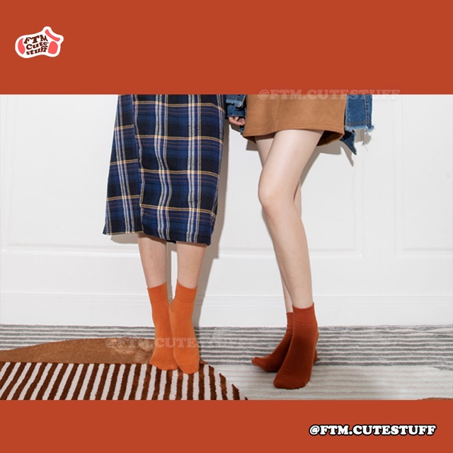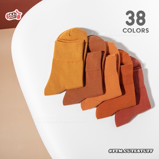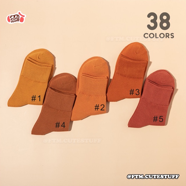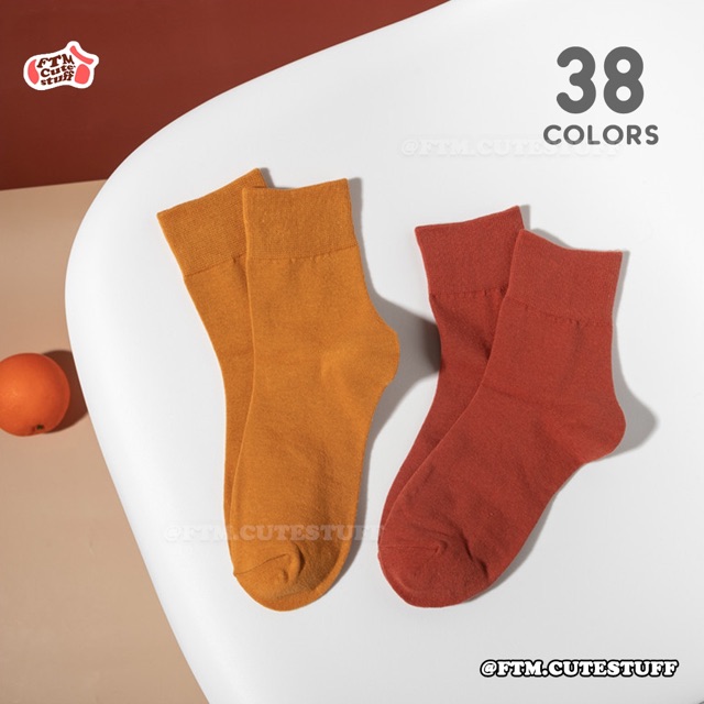 (พร้อมส่ง) New✨ถุงเท้าสีพื้นข้อกลาง 38 COLOURS #Orange 🍊🧡 ถุงเท้าสีส้ม
