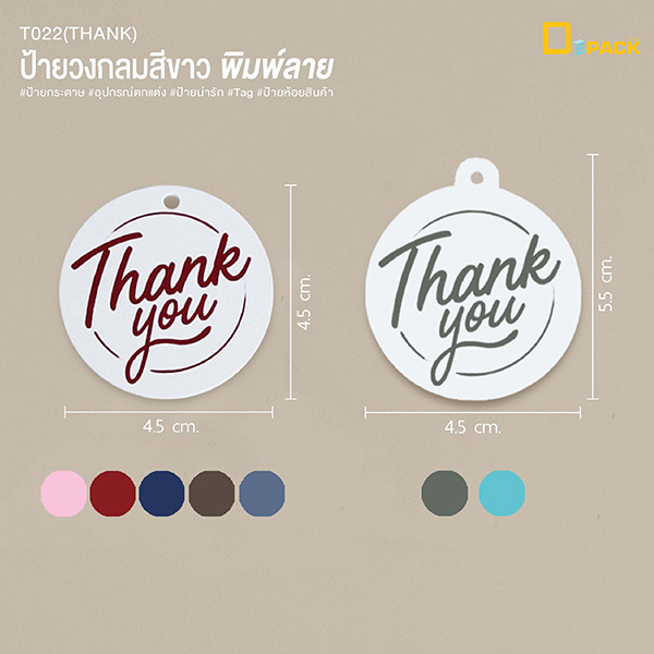 T022(THANK) ป้ายทรงกลมพิมพ์ลาย Thank You (ไม่คละสี) /ป้ายแท็ก Tag คำพูด ป้ายกระดาษ ป้ายห้อย ติดของชำร่วย/depack
