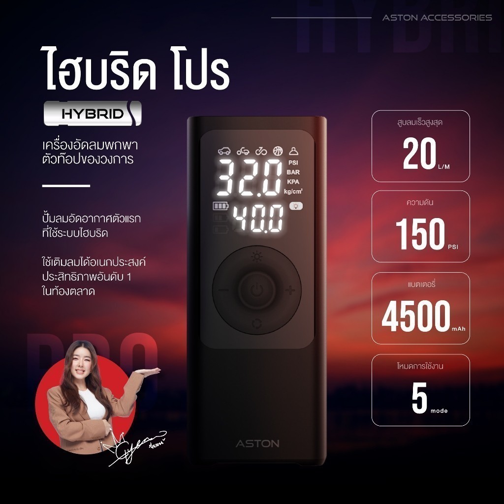ที่สูบลมไร้สาย เครื่องปั้มลม Aston Hybrid Pro ระบบ Hybrid สูบไวสุด 150psi รับประกัน 1 ปี