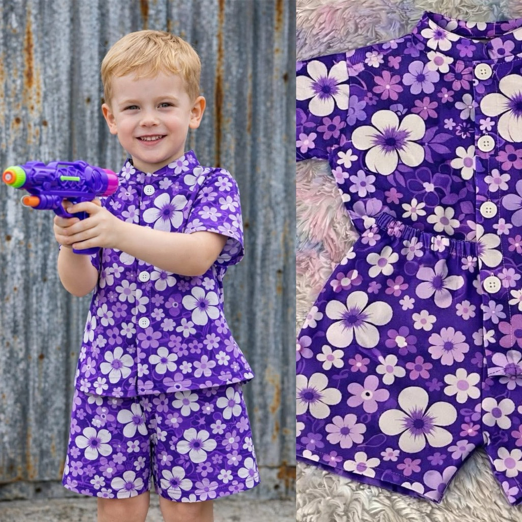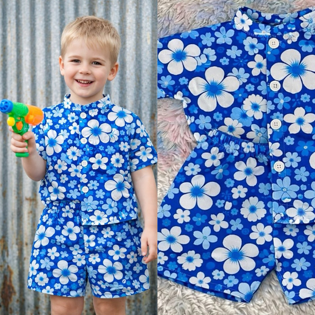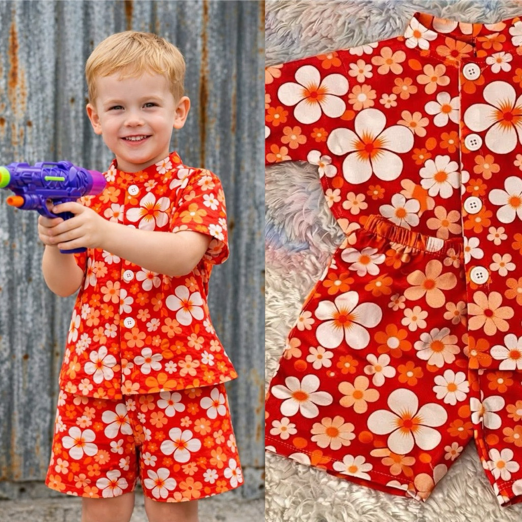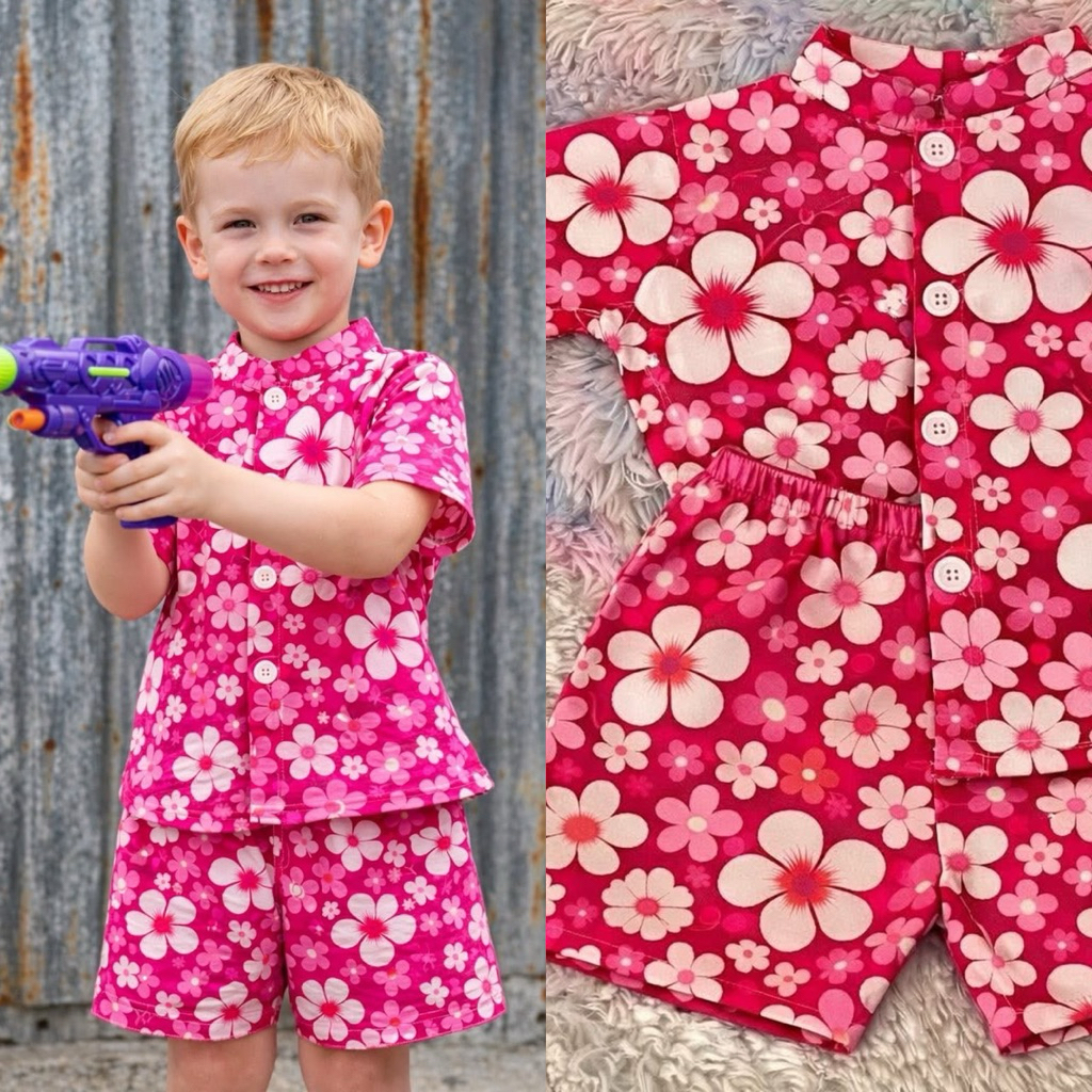 💦ชบาลายดอกหล่อมาก🌸 ชุดลายดอกเด็กผู้ชาย💦ไว้ใส่เล่นสงกานต์หล่อสุดๆ
