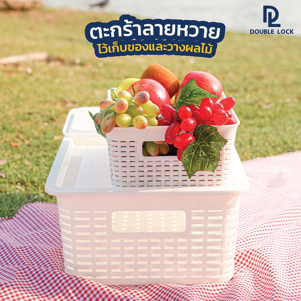 [1ใบ] ตะกร้าพลาสติก ตะกร้าลายหวาย ตะกร้าเก็บของอเนกประสงค์ มีฝาปิด JCJ Plastic Storage Box with Lid