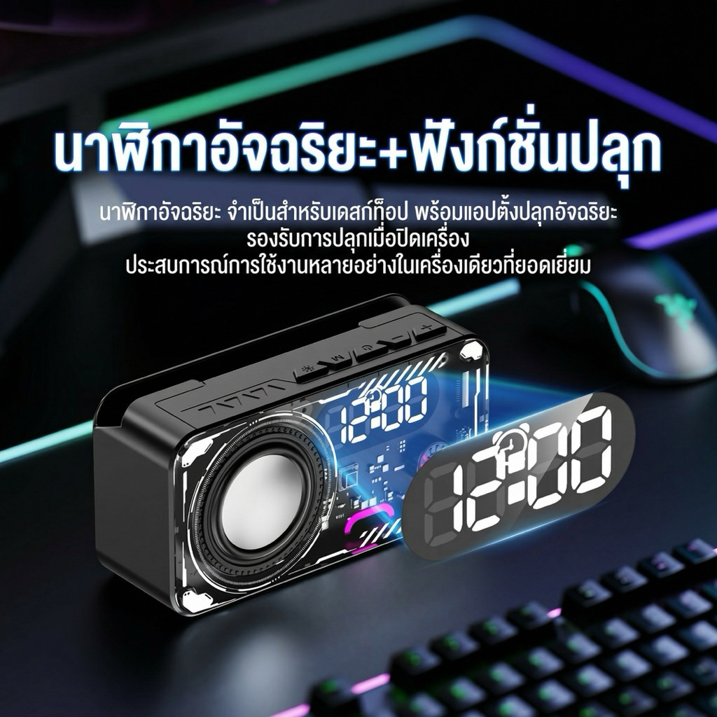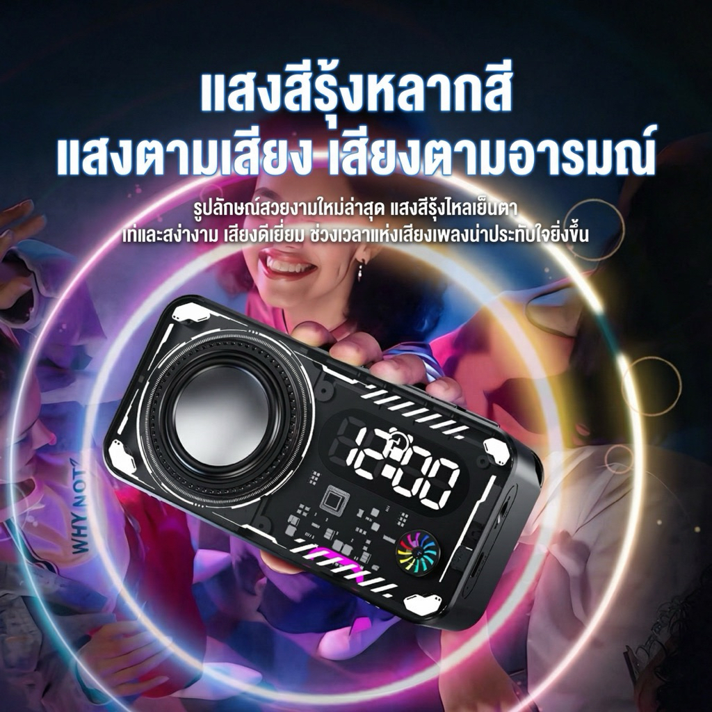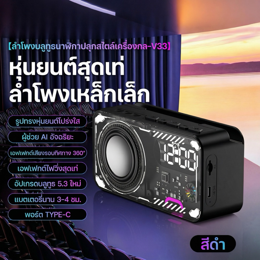 Oyathi ลำโพงบลูทูธ V33 ไร้สาย ดีไซน์ลมกลจอแสดงเวลา บลูทูธ 5.3 LED RGB Lighting ลำโพงบลูทูธ 5.3 ดีไซน์ (ประกัน6 เดิน)