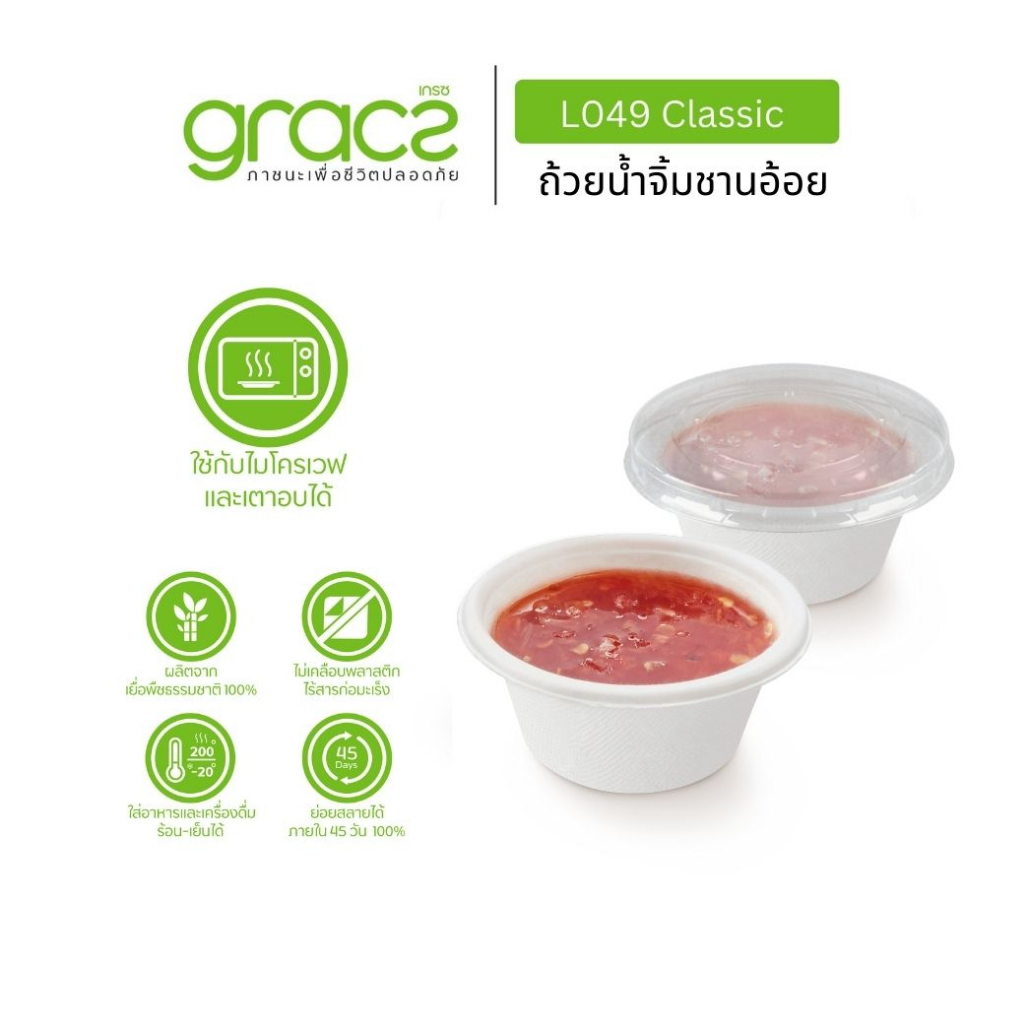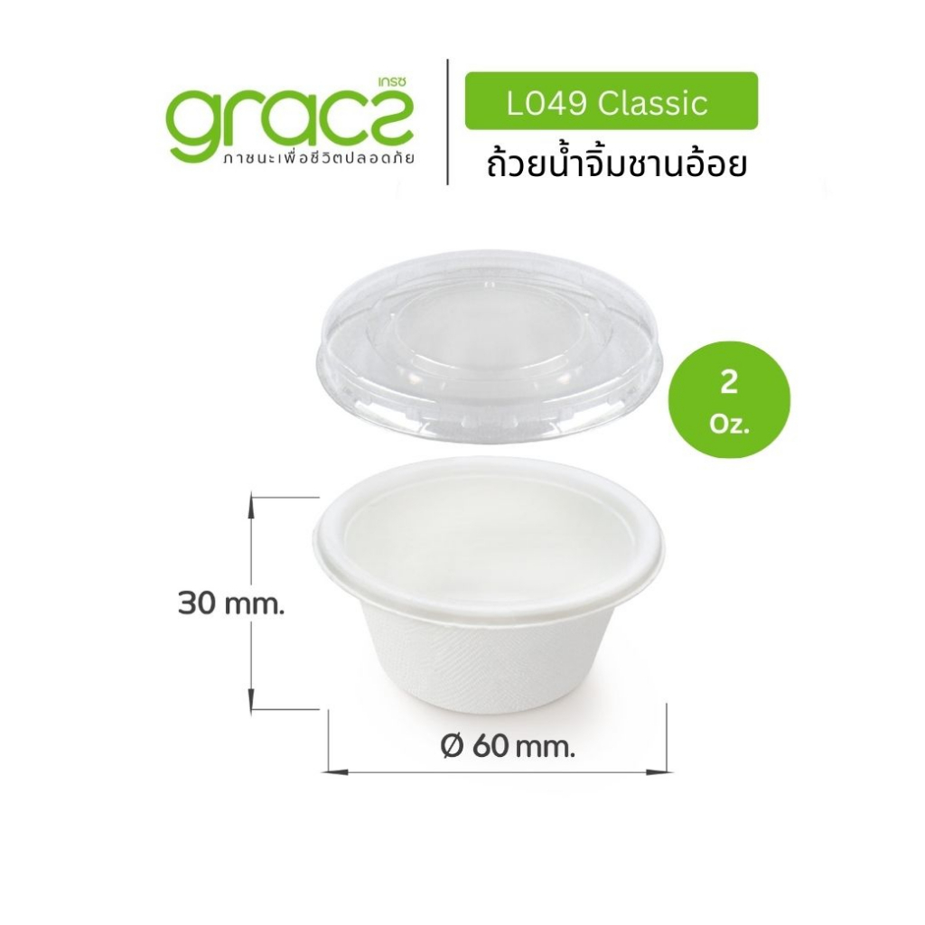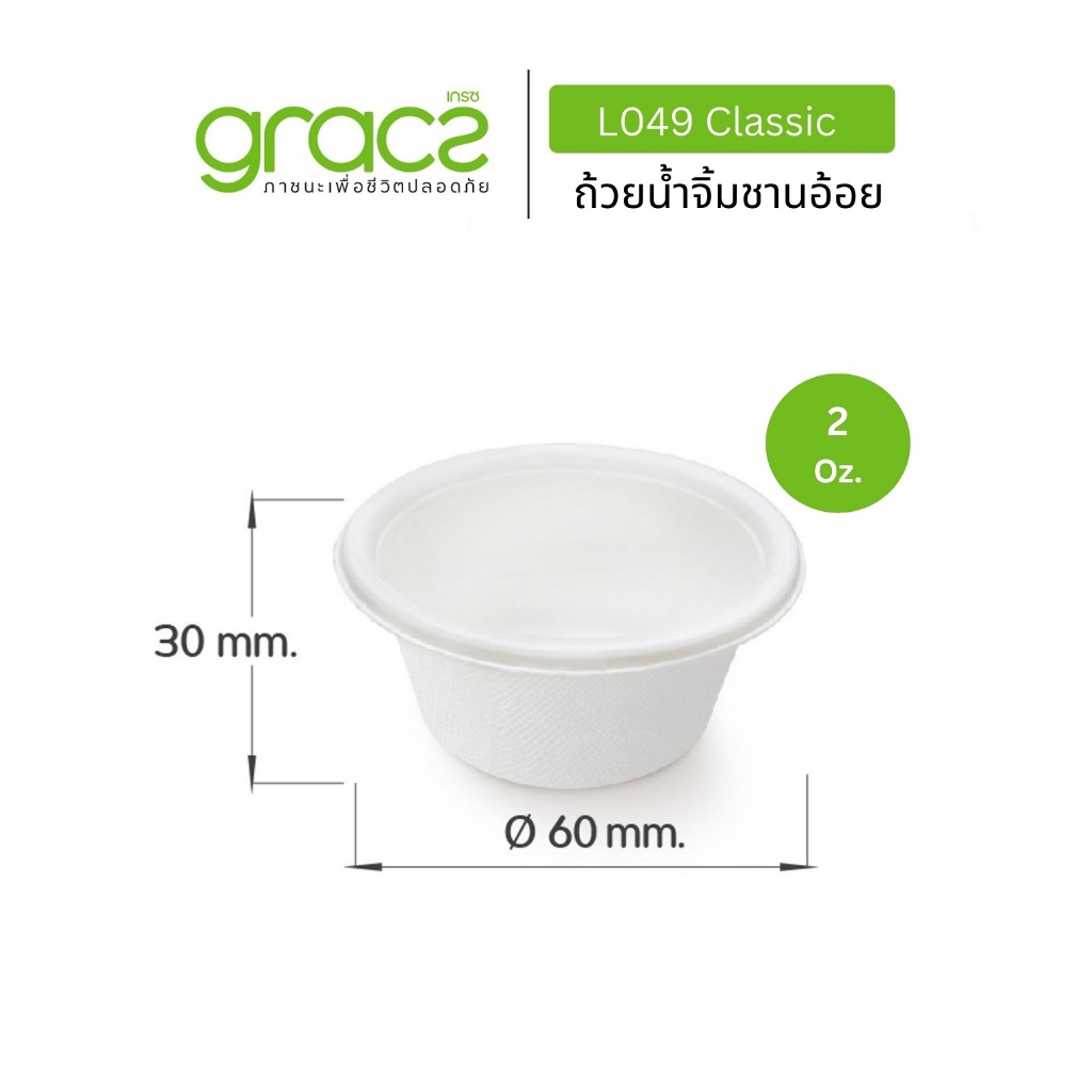 GRACZ ถ้วยน้ำจิ้มชานอ้อย 2 Oz.รุ่น L049 (แพ็ก 50 ชิ้น) (เกรซ คลาสสิค) ถ้วยน้ำจิ้ม ถ้วยน้ำสลัด