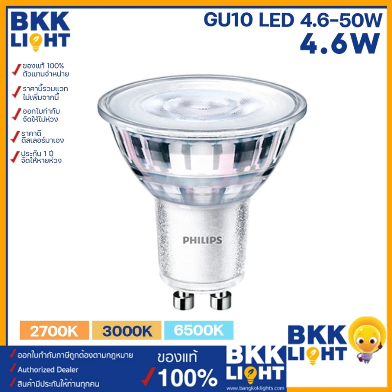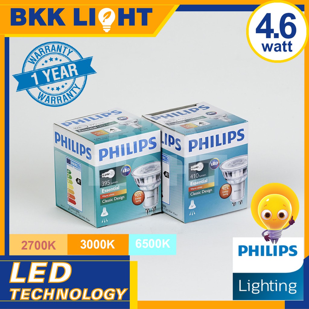 Philips หลอด led GU10 4.6-50W รุ่น Essential MR16 36D 220V (ต่อตรง) มี 3 สี 2700k 3000k 6500k
