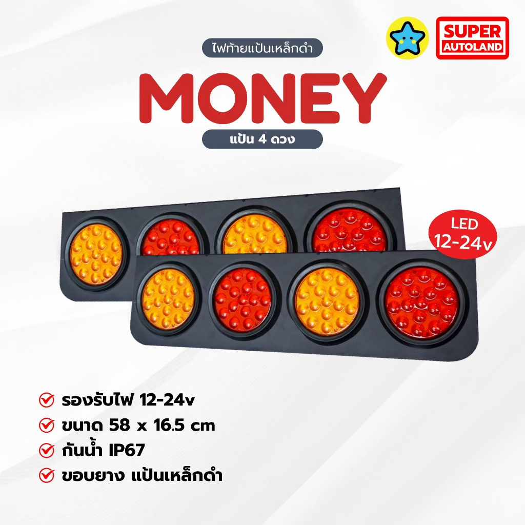 ไฟท้าย LED รถบรรทุก/พ่วง รุ่น MONEY ขอบยาง เหล็กดำ [12-24V] กันน้ำ IP67