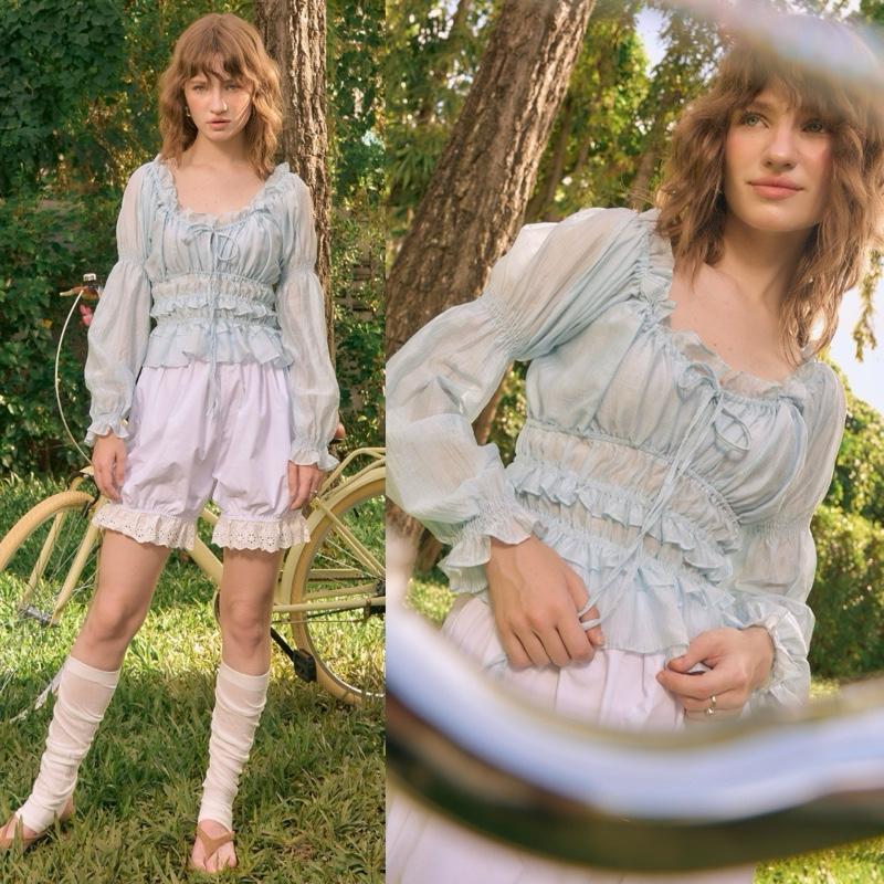 (5สี 3ไซส์) EVELYN RIBBON TOP เสื้อแขนยาว ผูกโบว์ รุ่น T110 -Mesave