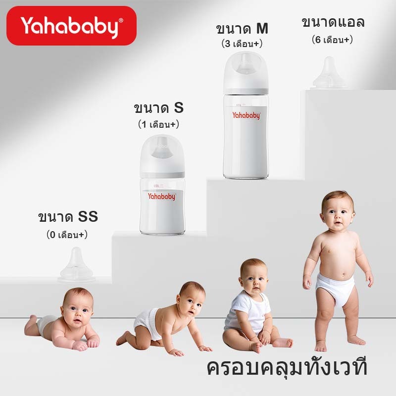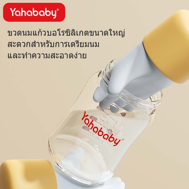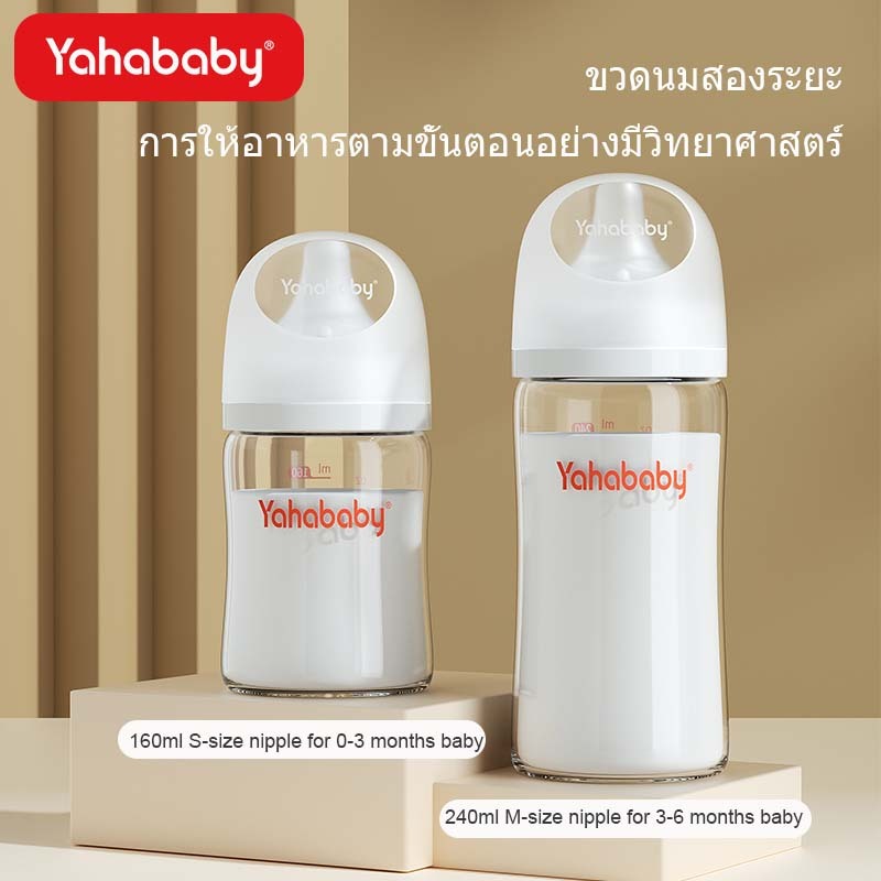 YAHABABY ขวดนมแก้ว ป้องกันท้องอืด ป้องกันการสำลัก ฐานกว้าง ขวดนม ขวดนม 160ML/240ML/5/8oz