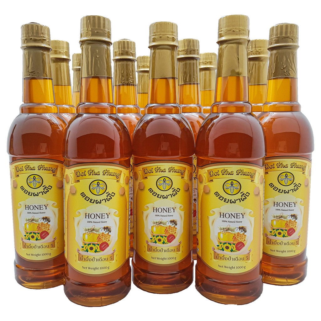 น้ำผึ้งป่าเดือน 5 แท้100% (ชุด12ขวด) ขนาด1000กรัม ตราดอยผาผึ้ง