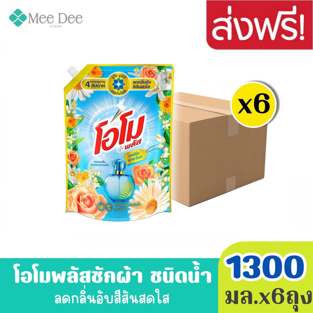 ยกลังx6ถุง OMO โอโม พลัส น้ำยาซักผ้า สูตรเข้มข้น โรซี่ ลิลลี่ สีทอง ขนาด 1300 มล.x6ถุง ลดกลิ่นอับสีสันสดใส