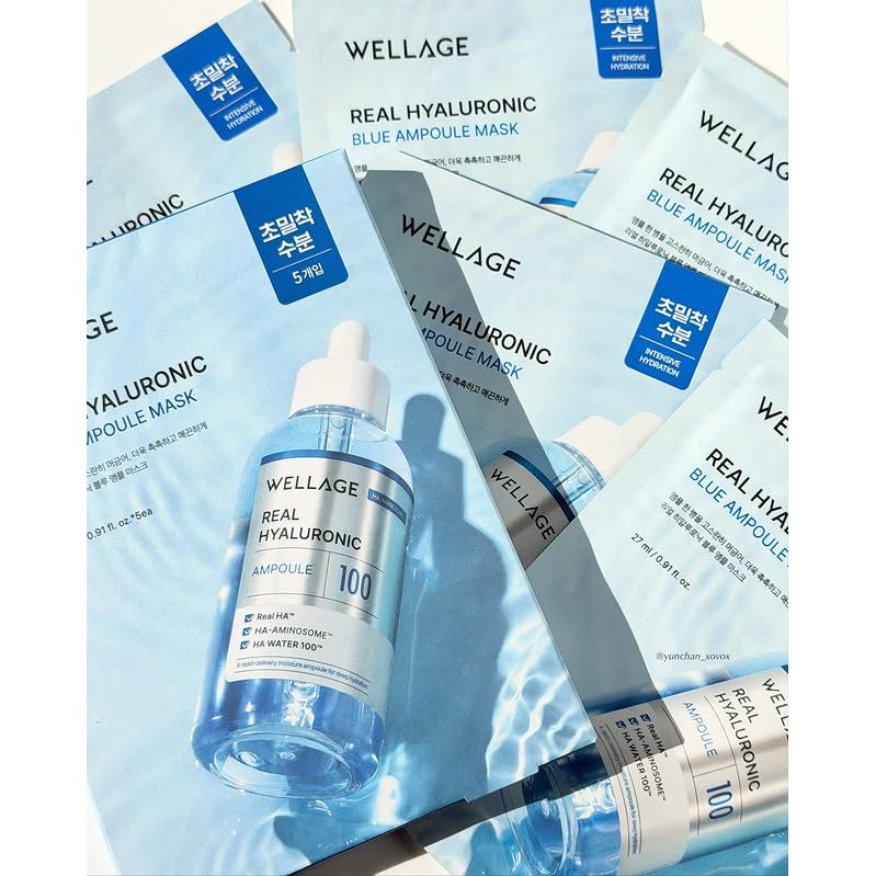 ✅พร้อมส่ง ถูกที่สุด ของแท้ WELLAGE REAL HYALURONIC BLUE AMPOULE MASK มาสก์ชีทไฮยา