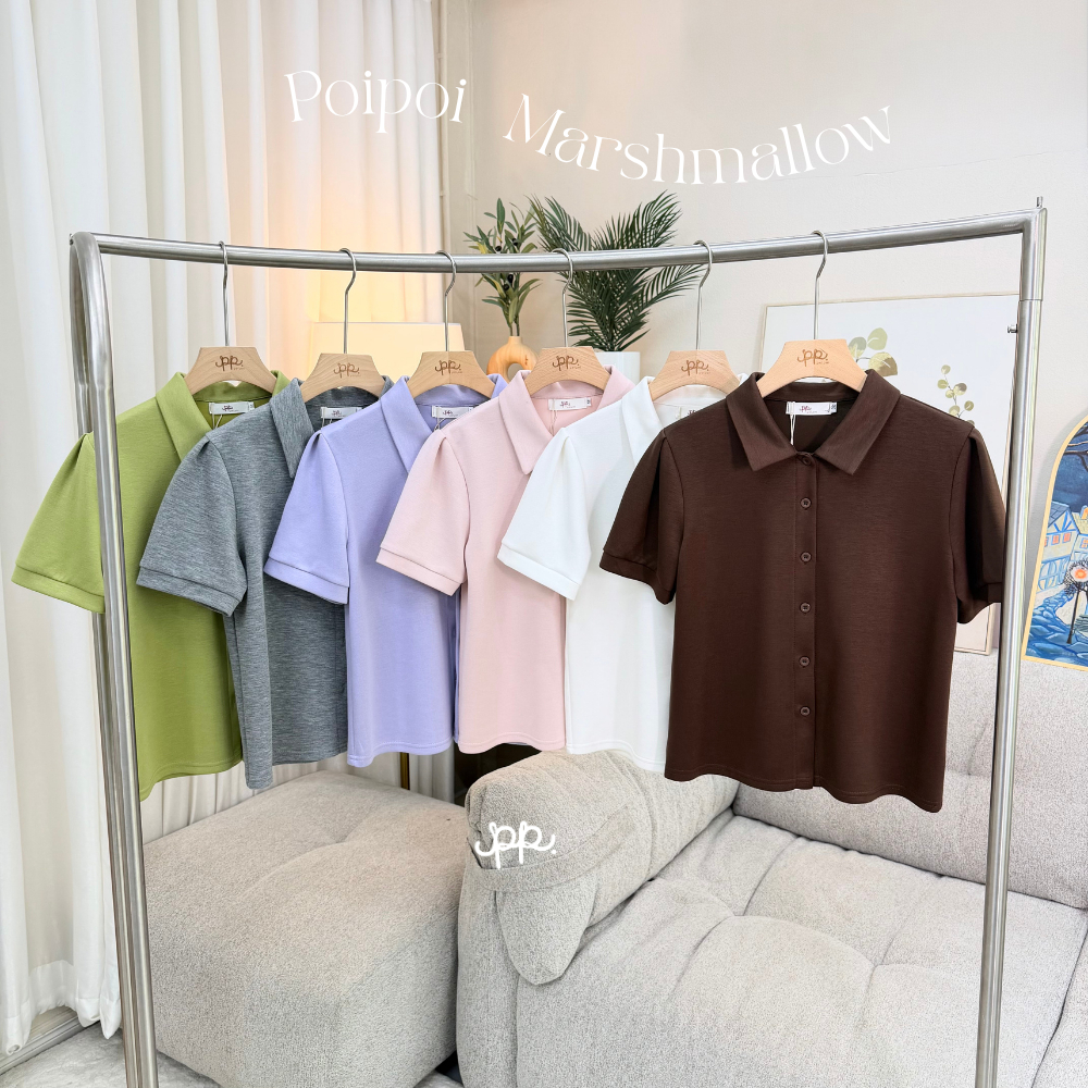 POI เสื้อยืดผ้ามาร์ชเมลโล่คอปกแขนน่ารัก L014C7