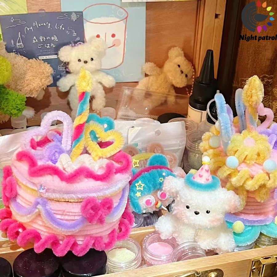 (100PCS)ลวดกำมะหยี่ขนฟูหนา 8 มิล นุ่ม ดัดง่าย ขนนุ่มฟู ไม่หลุดร่วง สีสันสดใส ทำงานฝีมือ งานฝีมือ ประดิษฐดอกไม้ Chenille