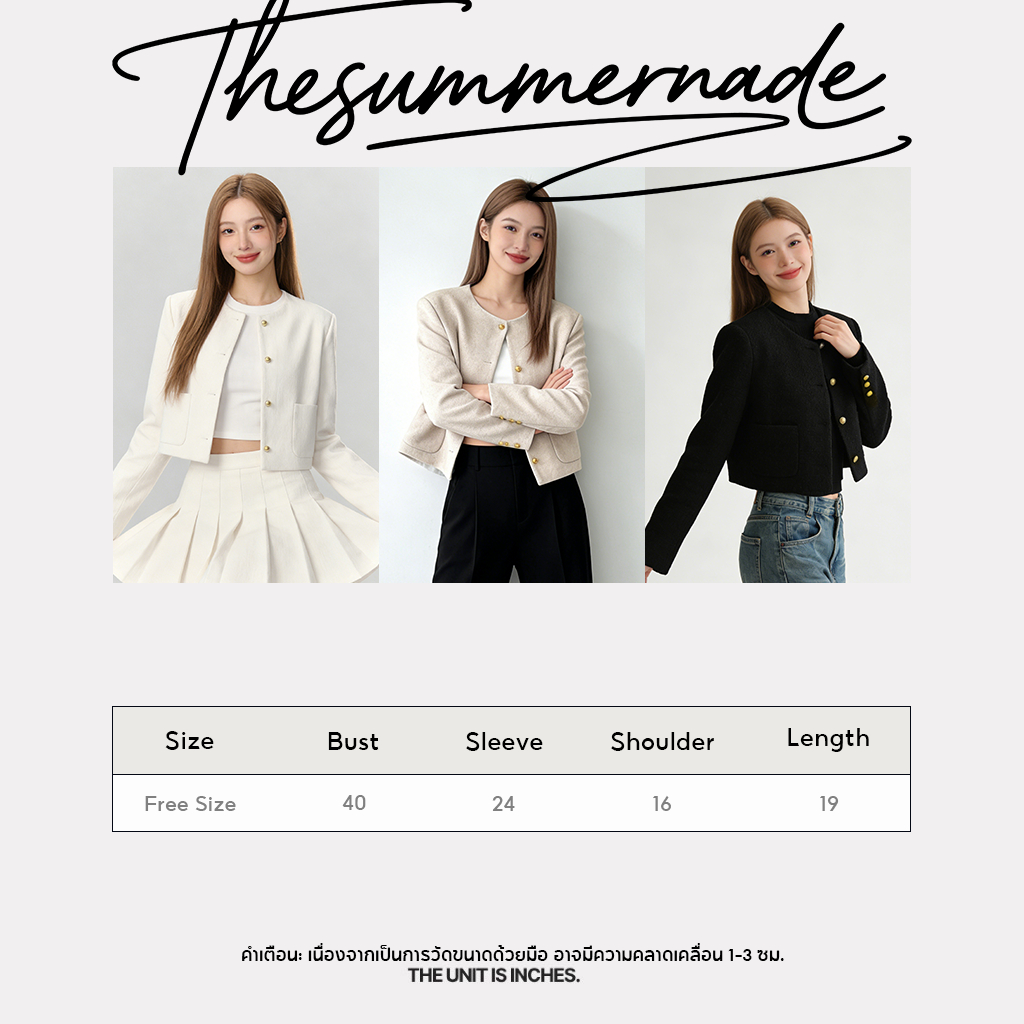 Thesummernade Jolin Blazer (ได้เฉพาะเสื้อเบลเซอร์)Blazer สไตล์เกาหลี เสื้อครอปเบเซอร์
