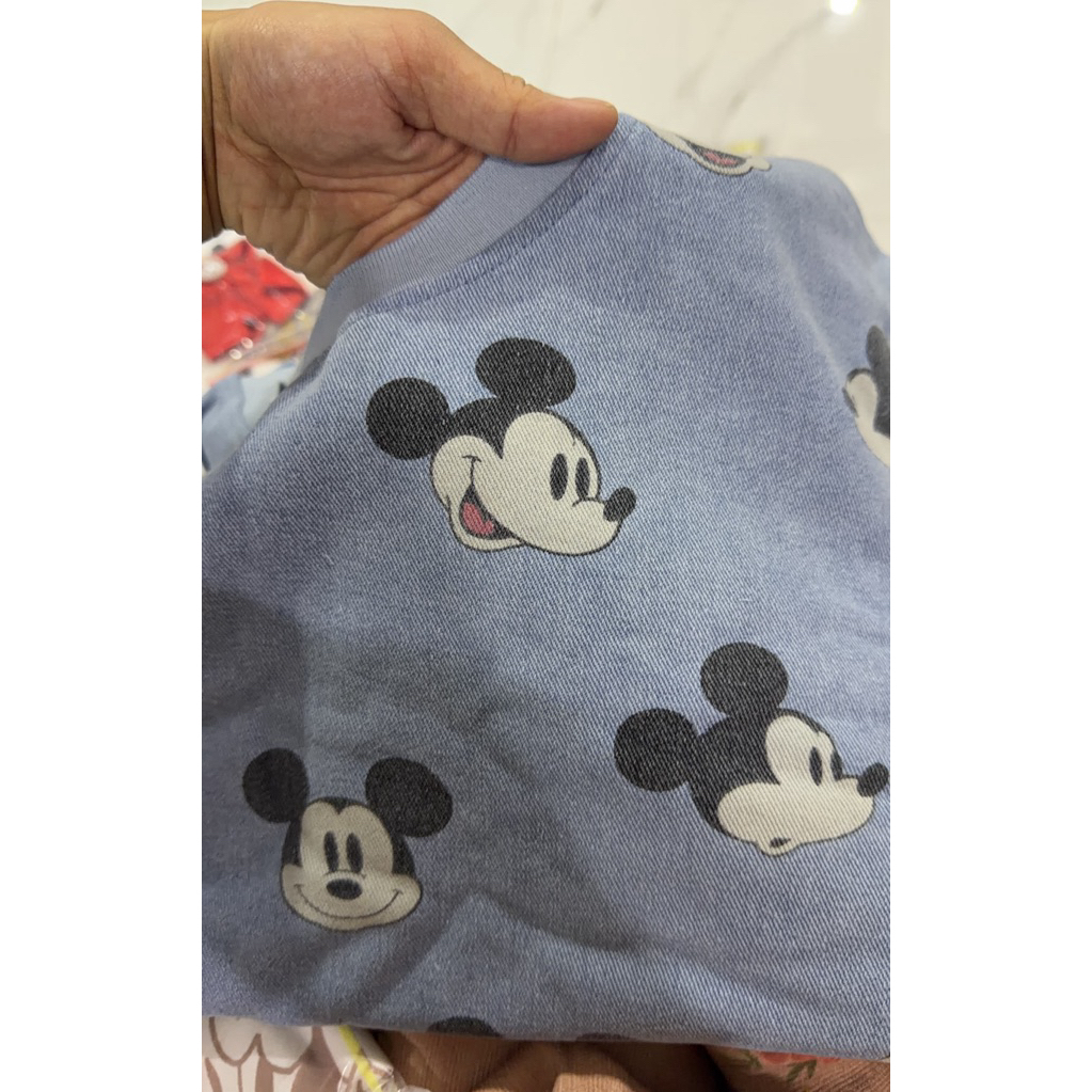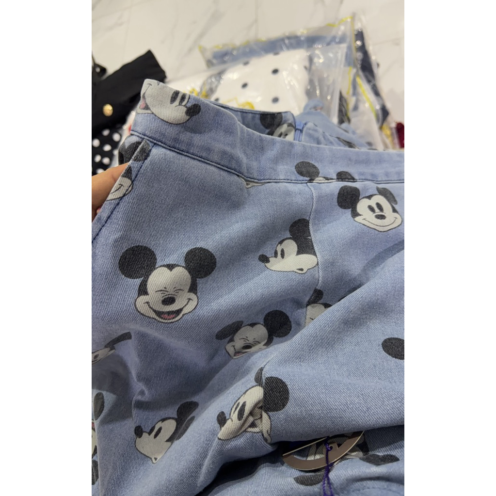 (เอวปกติ วัดตึง.5ลงได้ เสื้ออกใหญ่ 6 นิ้ว) ชุดยีนส์ เสื้อ+กางเกงขาสั้น ผ้ายีนส์ ลายมิกกี้ งานปป้าย chalita