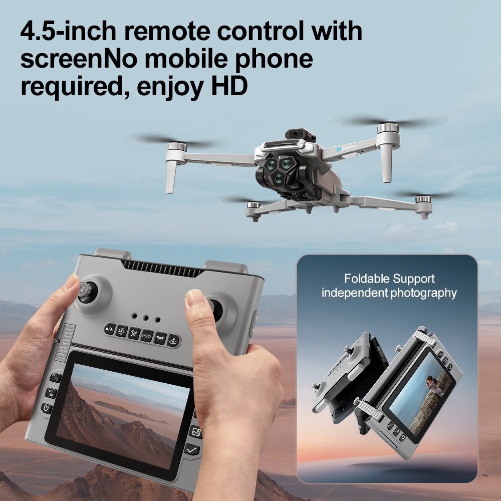 DJIระดับ โดรน GPS Brushless Drone wifi โดรมบังคับ รีโมทคอนโทรลหน้าจอ 4.5 นิ้ว กล้องคู่ HD เลนส์ESC90°บินกลับด้วยปุ่มเดีย