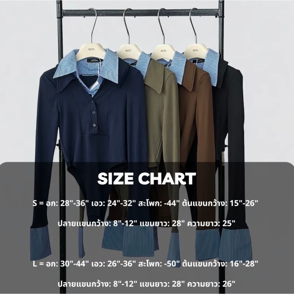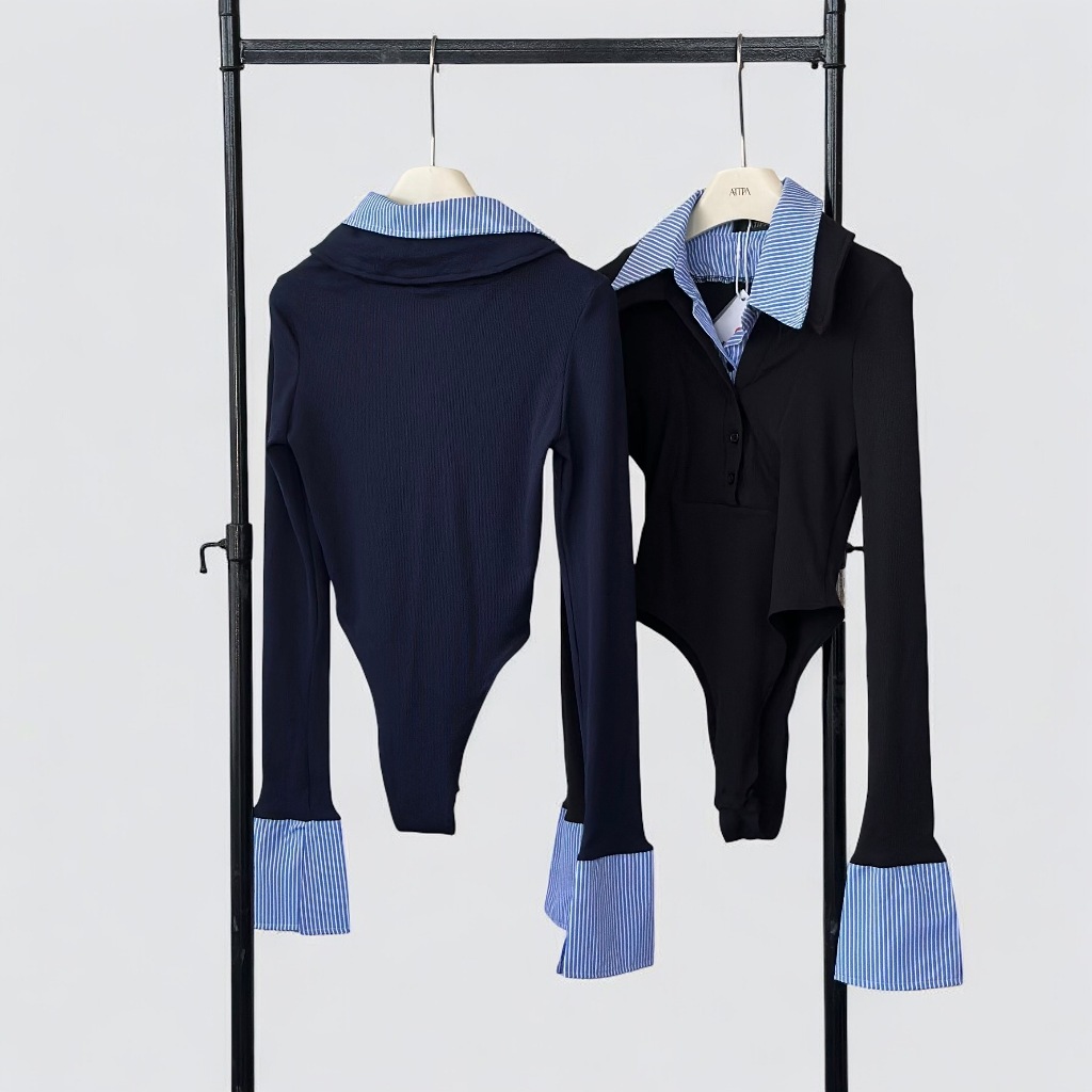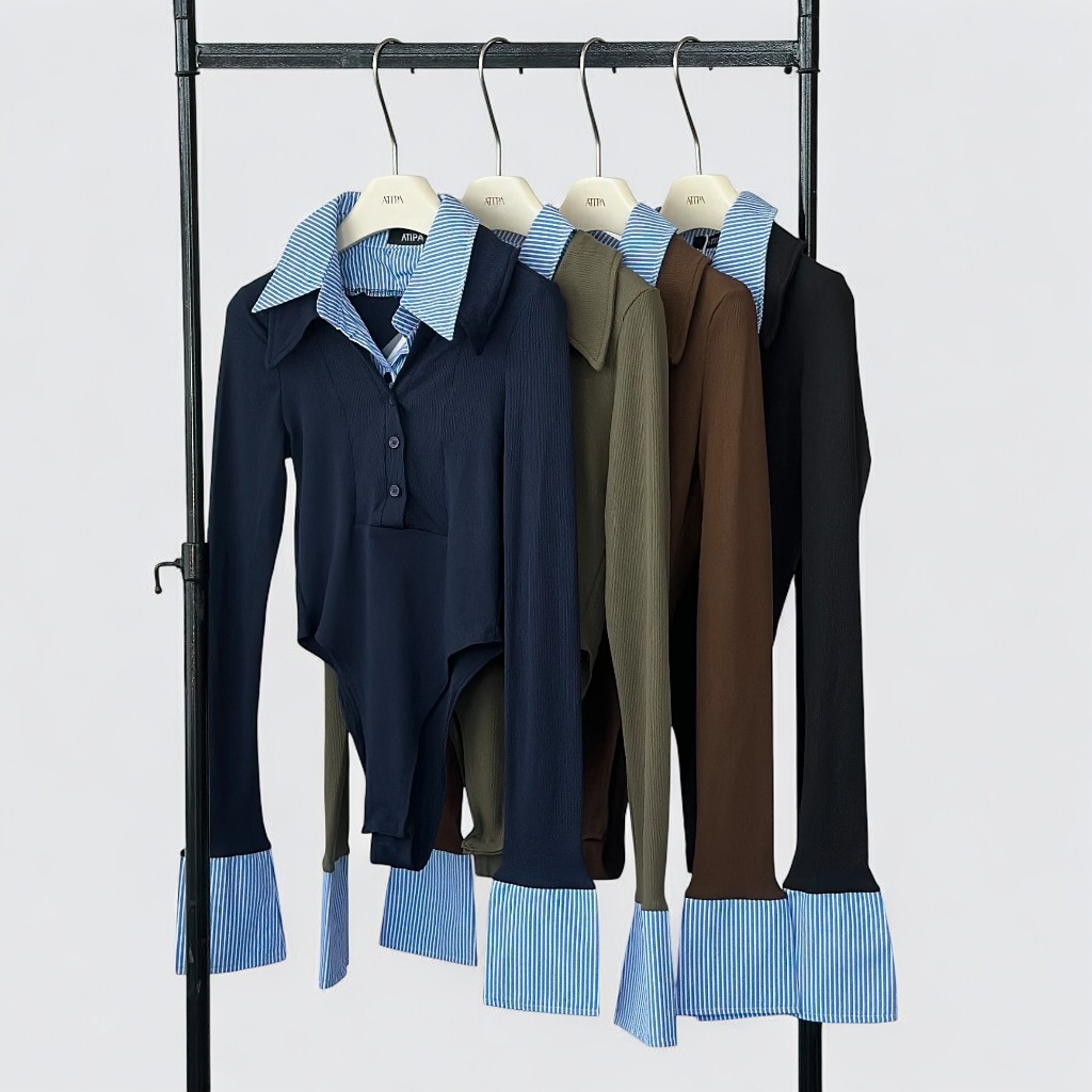 Atipashop - ARDENNE FORMAL BODYSUIT (#7313) บอดี้สูทแขนยาว คอปก สีทูโทน