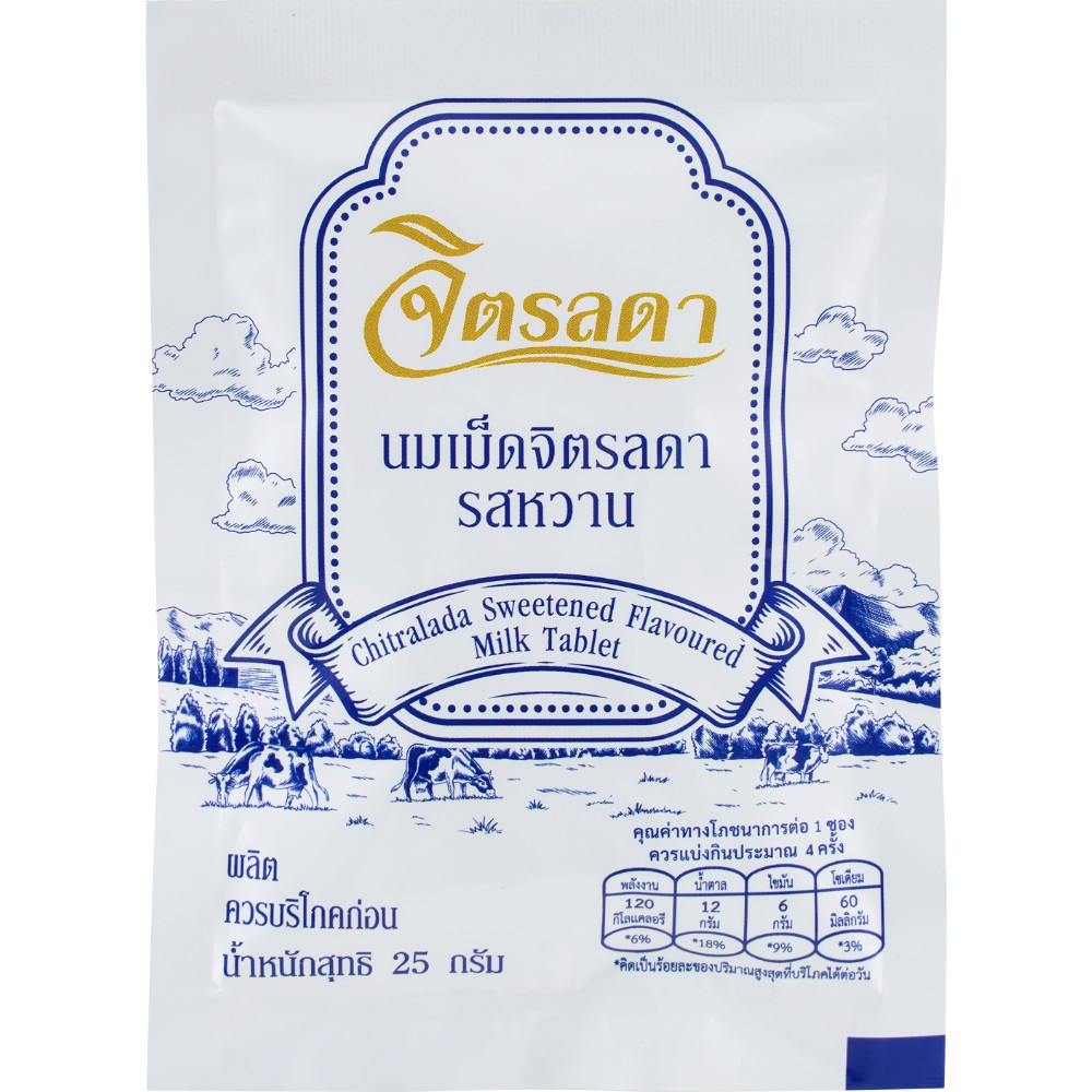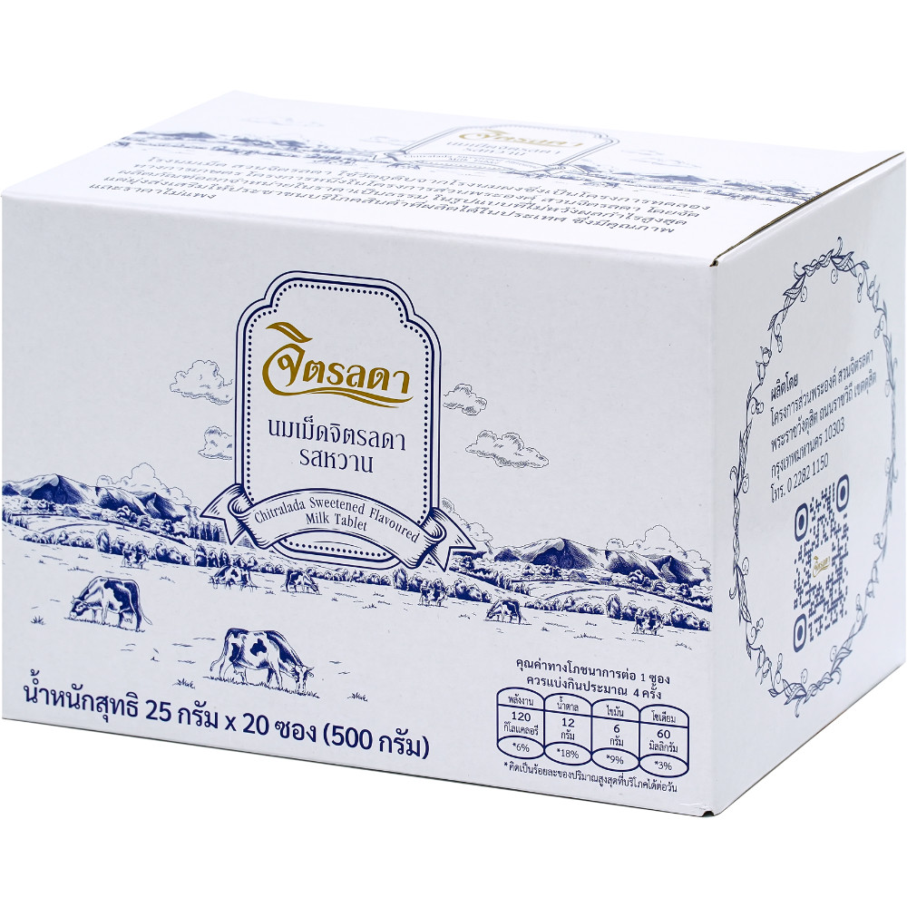 Mall นมเม็ดจิตรลดา รสหวาน นมอัดเม็ด นมปรุงแต่งชนิดเม็ด รสหวาน ยกกล่อง 20 ซอง (ซองละ 25 กรัม)