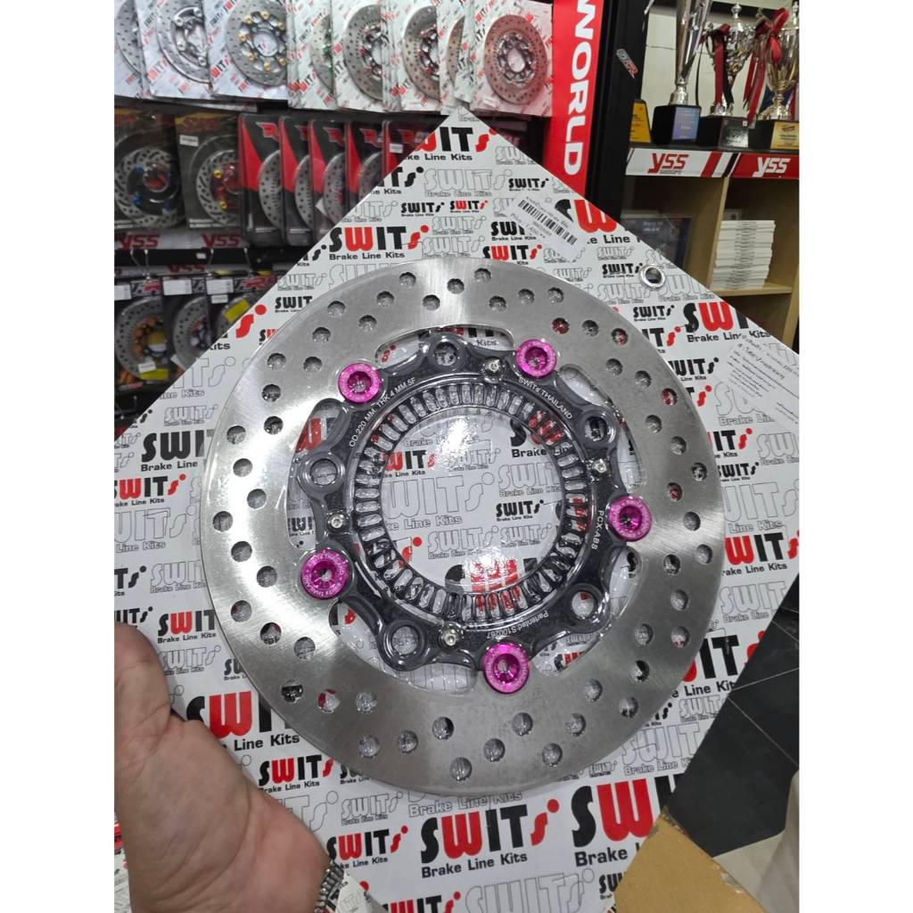 จานหน้ากลม PCX160 ABS SWITS จาน220MM 5 มุด มีสี แดงดำ เขียวดำ น้ำเงินดำ ส้มดำ ชมพูดำ เงินดำ เทาดำ ม่วงดำ ดำดำ