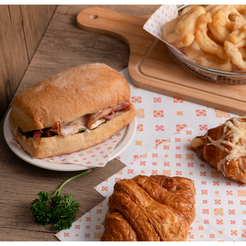 กระดาษรองอาหาร รองของทอด รองขนมปัง ผลิตและออกแบบโดยโรงงานของเรา มีราคาส่ง มี 3 ขนาด (1 แพค 100 ชิ้น)