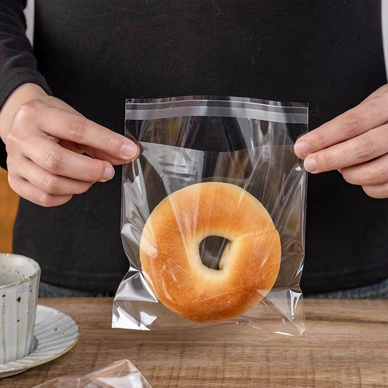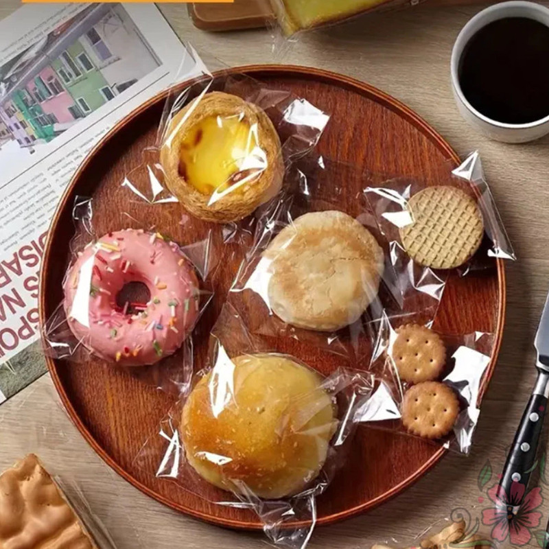KM 100ใบ/แพค ถุงฝากาว ถุงบรรจุเบเกอรี่ ถุงขนมปัง ถุงใส่ขนม คุกกี้ บราวนี่ ฝากาว ถุงพลาสติกใส วัสดุเกรดอาหาร 6 ขนาด