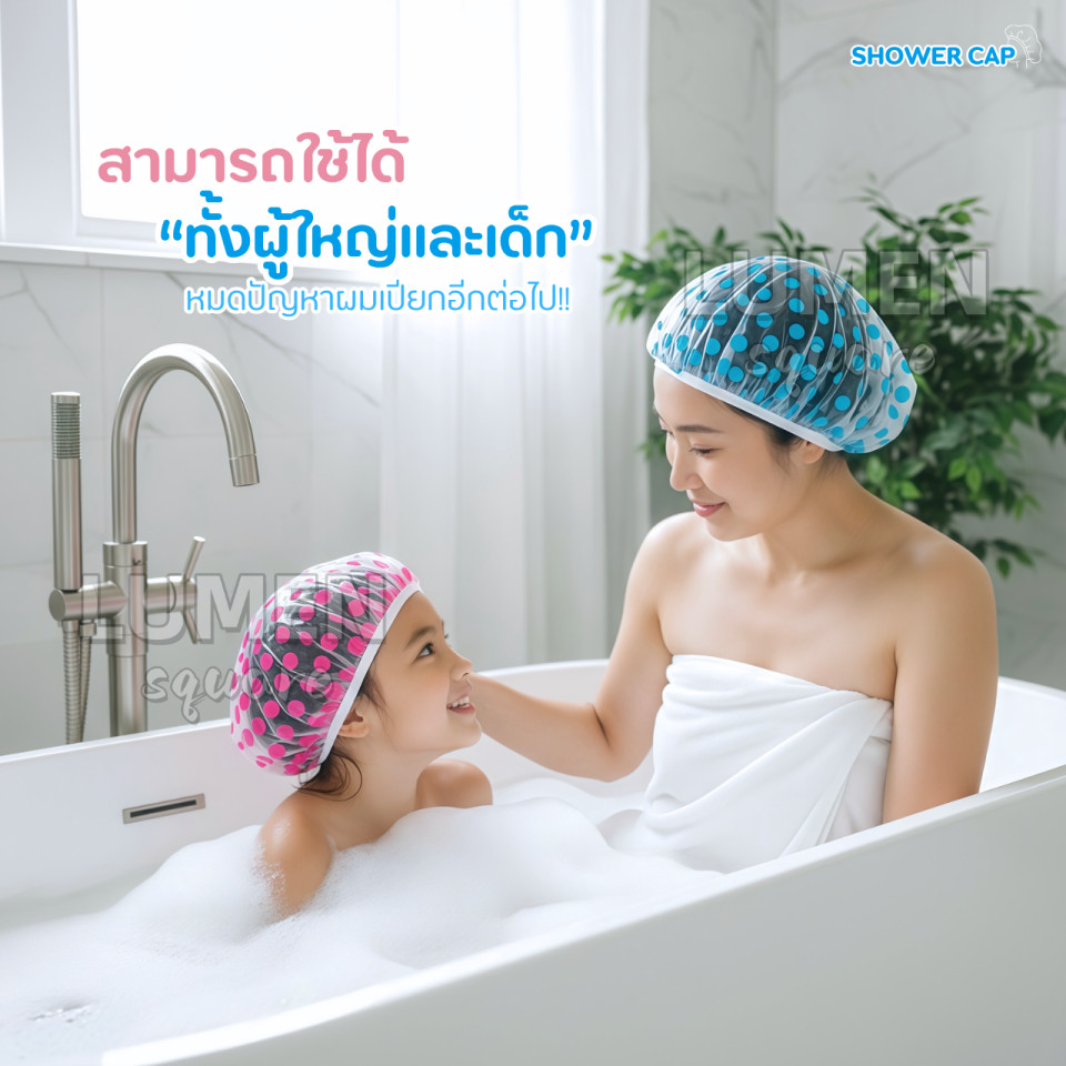 หมวกคลุมผมอาบน้ำ หนาพิเศษ2ชั้น กันน้ำ เหนียวทนทาน ลายน่ารัก Shower cap ผมแห้ง หมวกอาบน้ำ ลายการ์ตูน ผ้าเช็ดตัว ผ้าคลุมผม