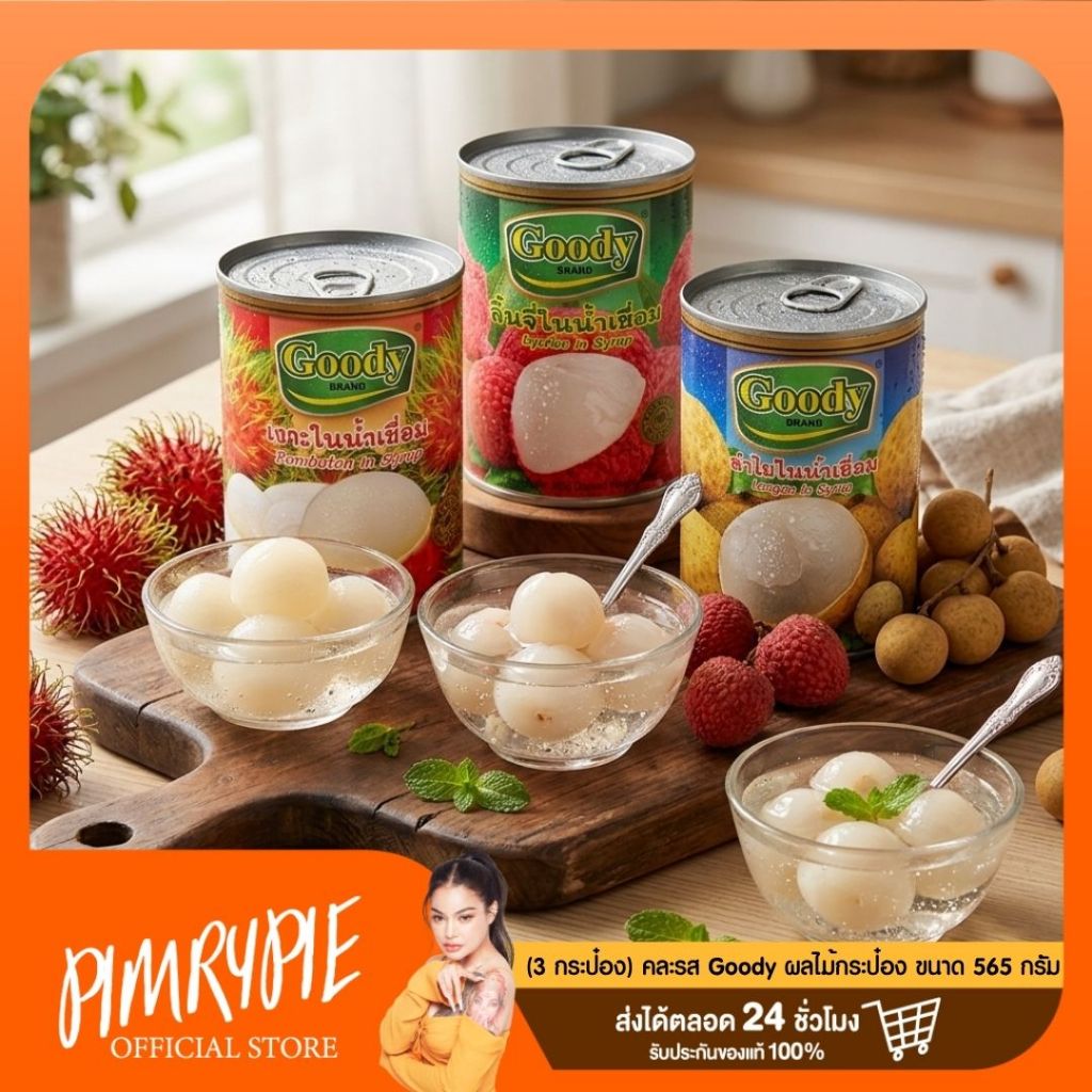 3 กระป๋อง (คละรส) Goody ผลไม้กระป๋อง ขนาด 565 กรัม