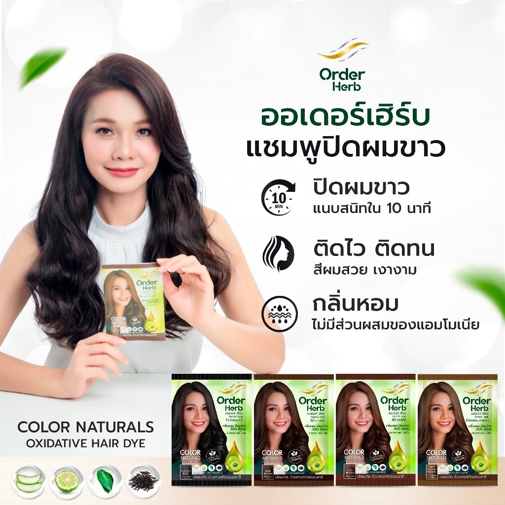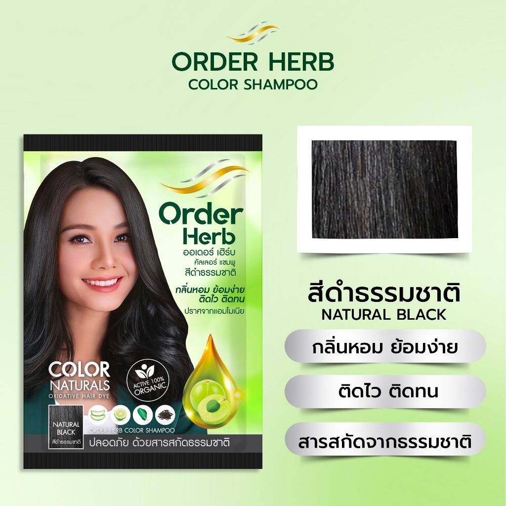 (1กล่อง มี 6ซอง) Order Herb Color Shampoo 30ml ออเดอร์ เฮิร์บ คัลเลอร์ แชมพู แชมพูปิดผมขาว 30มล