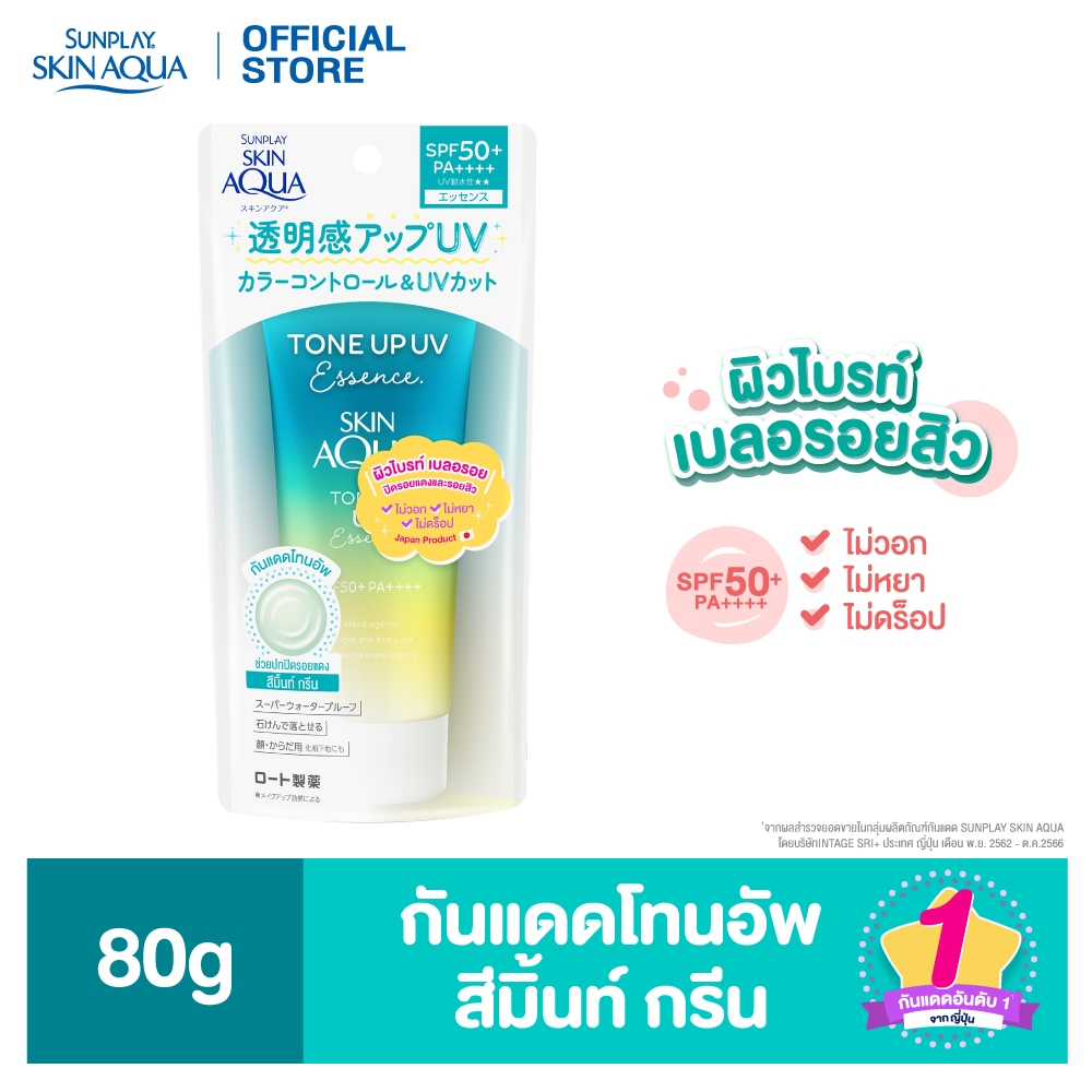 [ซื้อ1แถม1] Sunplay Skin Aqua Tone Up UV Essence SPF50+ PA++++ 80g (Mint Green) สกินอะควา โทนอัพ สีลาเต้เบจ 80ก.