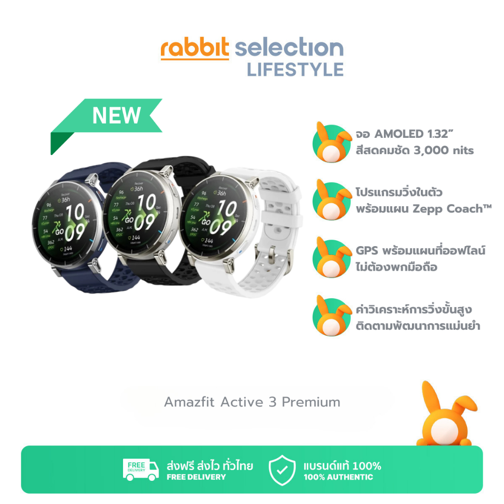 [NEW2026+โค้ดลด120.-] Amazfit Active 3 Premium รุ่นใหม่ หน้าจอ AMOLED 1.32" 3000nits หน้าจอ Sapphire Built-in running