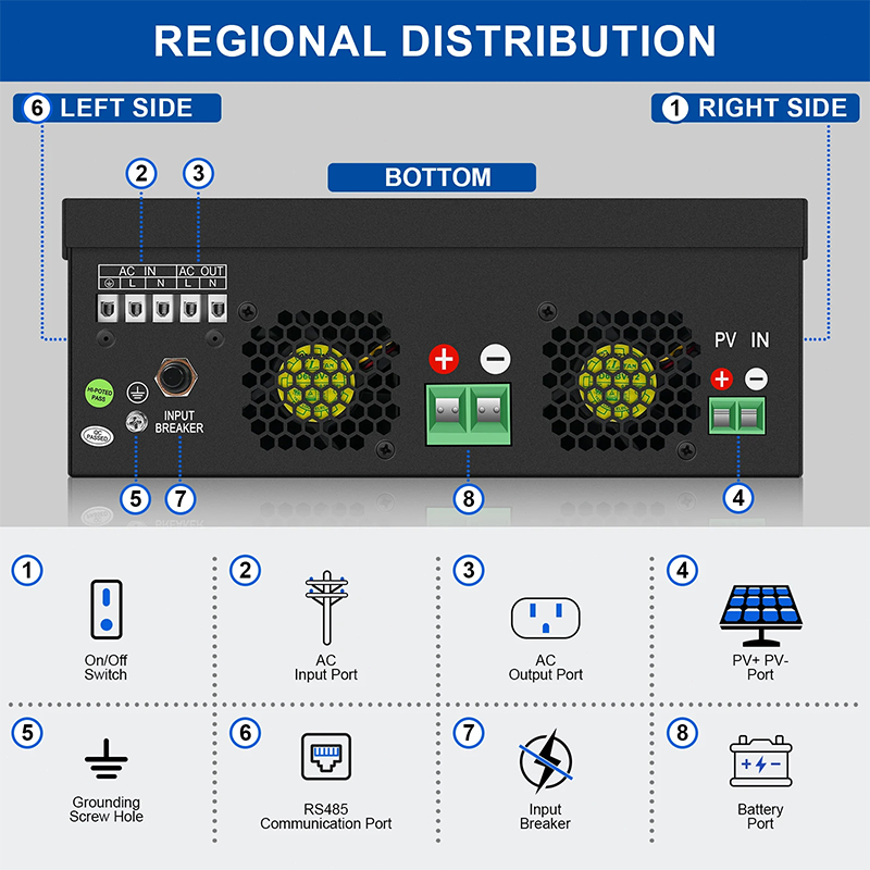 ECGSOLAX อินเวอร์เตอร์ไฮบริด 3kw 24V อินเวอร์เตอร์ไฮบริดออฟกริด hybrid inverter on off grid pure sine wave 80A MPPT